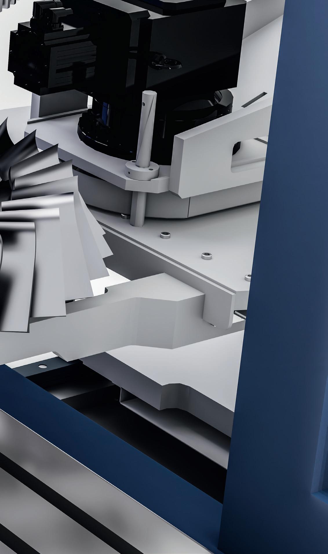 • Einzeln aufgespannte Werkstücke in 5-AchsenBearbeitung, wie auch grosse Paletten mit MehrfachAufspannungen müssen gemischt und flexibel zu bearbeiten sein.