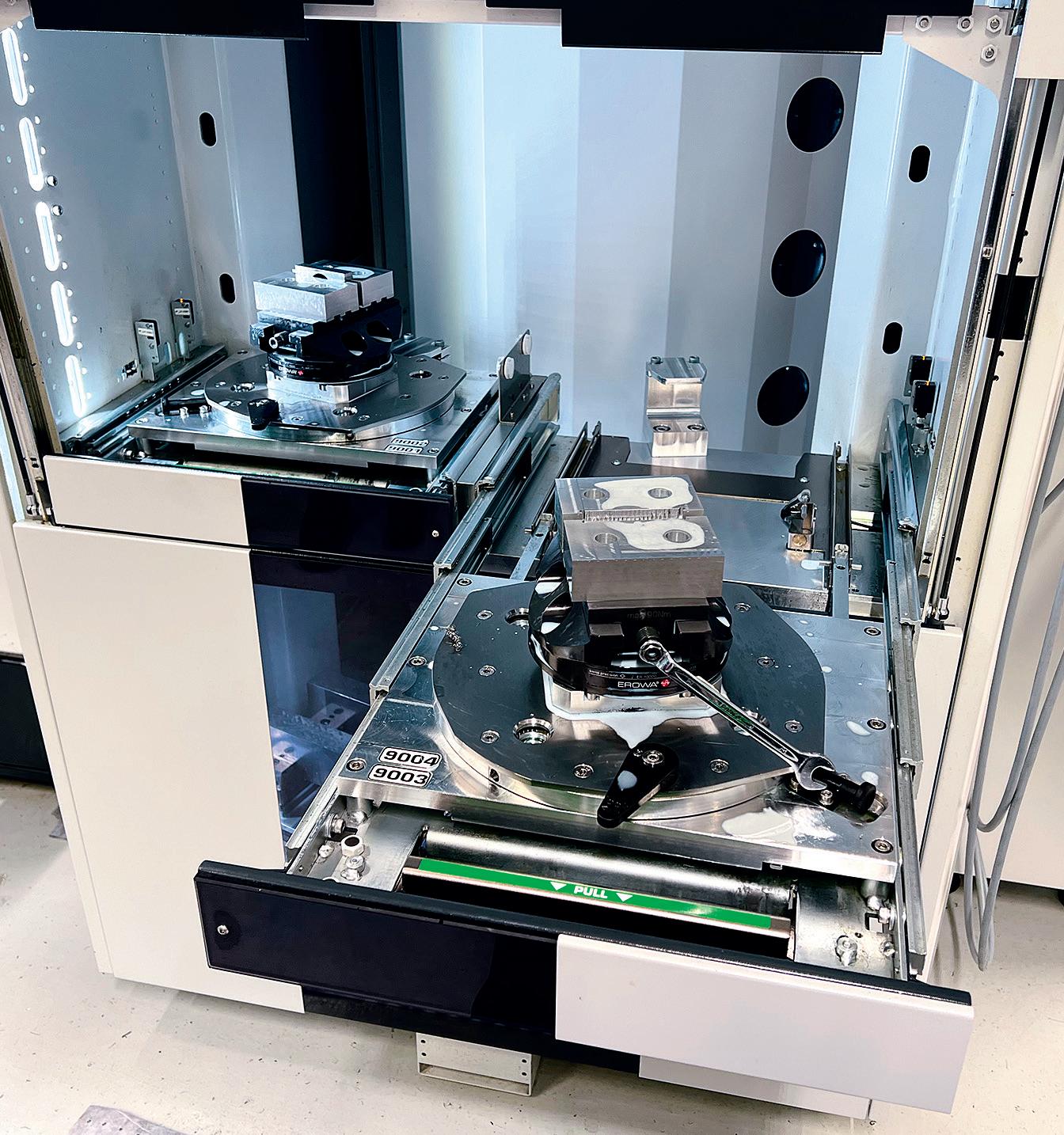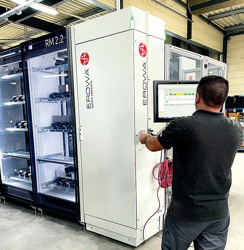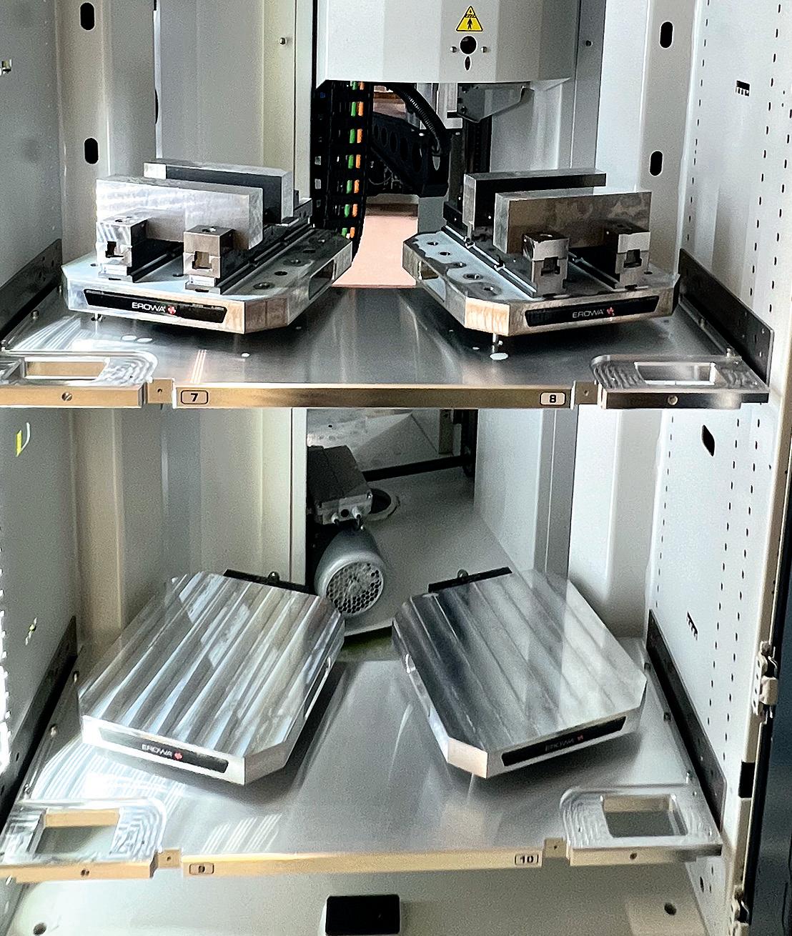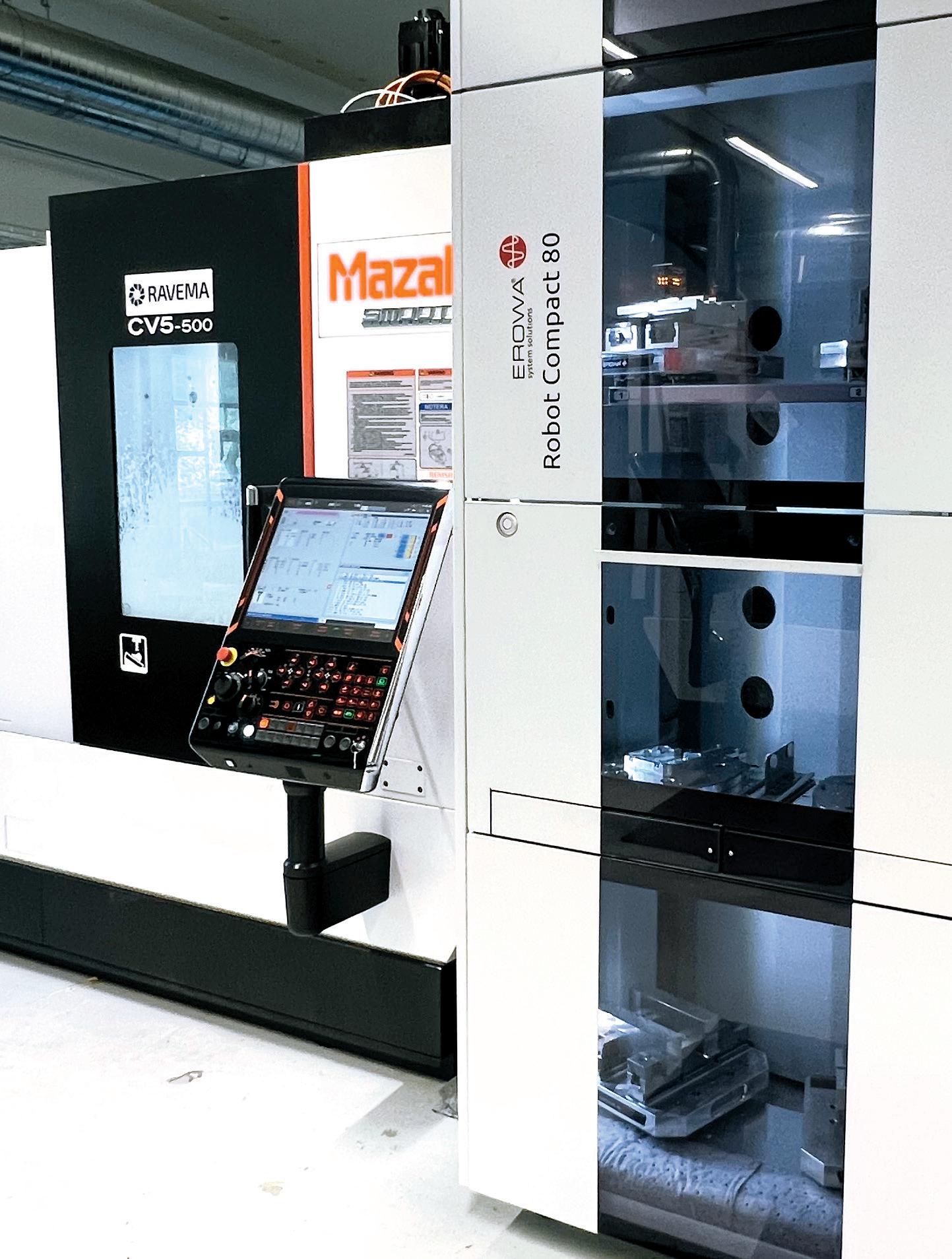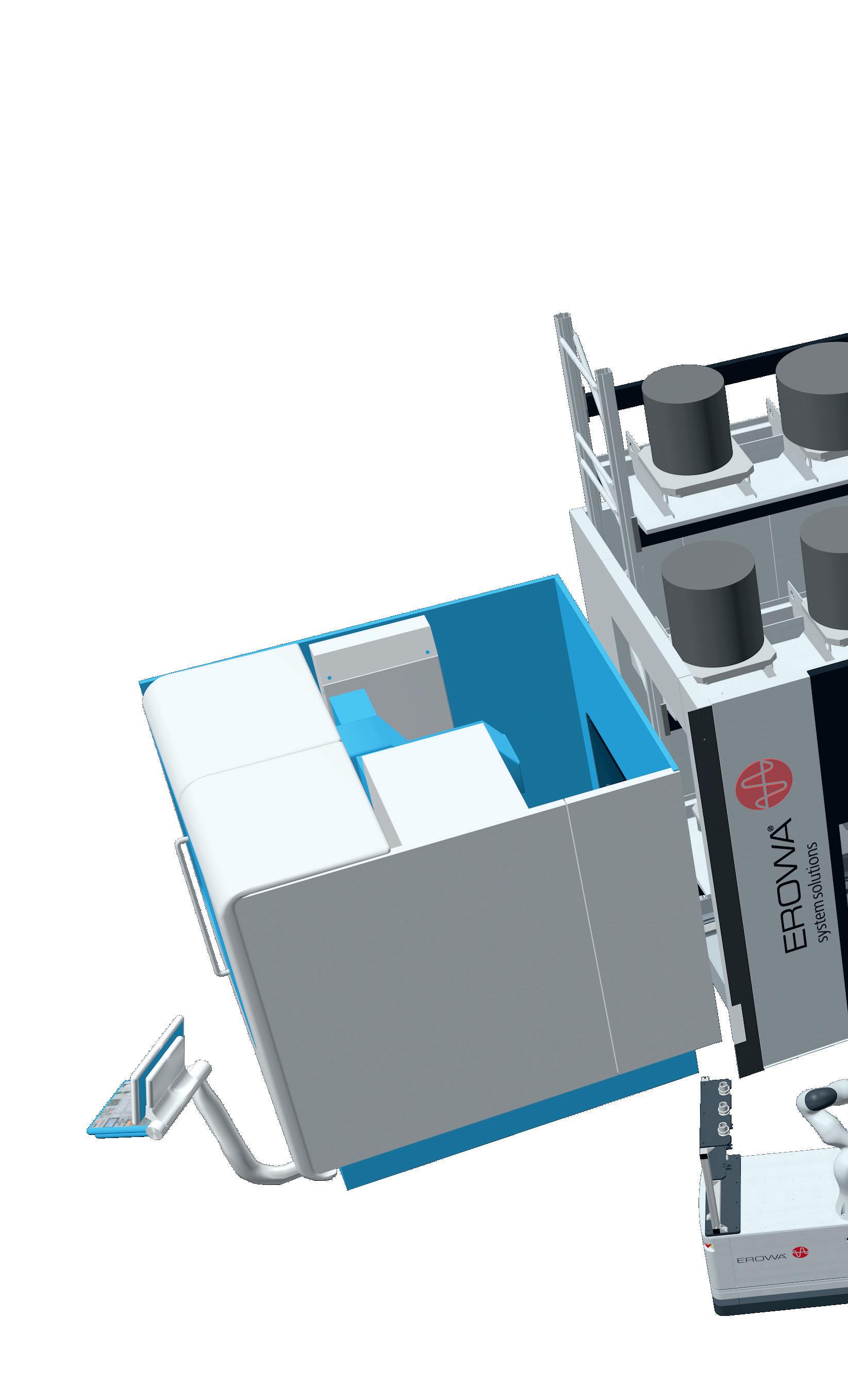 Produktivität steigern, bei sehr hoher Qualität Nach der Detailplanung und einigen Anpassungen, gegeben durch die herrschenden Platzverhältnisse, wurde die neue Fertigungsanlage Ende Oktober 2022 in Betrieb genommen. Und man ist auf bestem Weg, die geforderten Ziele zu erreichen oder sogar zu übertreffen. Die Automation ist bereit für einen 24/7 Betrieb. «Die EROWA Spannsysteme und das Palettisieren der Werkstücke sind ausschlaggebend, um die Flexibilität in der Automation zu gewährleisten und sogar zu optimierenum so die Produktivität zu steigern und die sehr hohen Qualitätsansprüche von Komax beizubehalten», führt Schärer weiter aus.