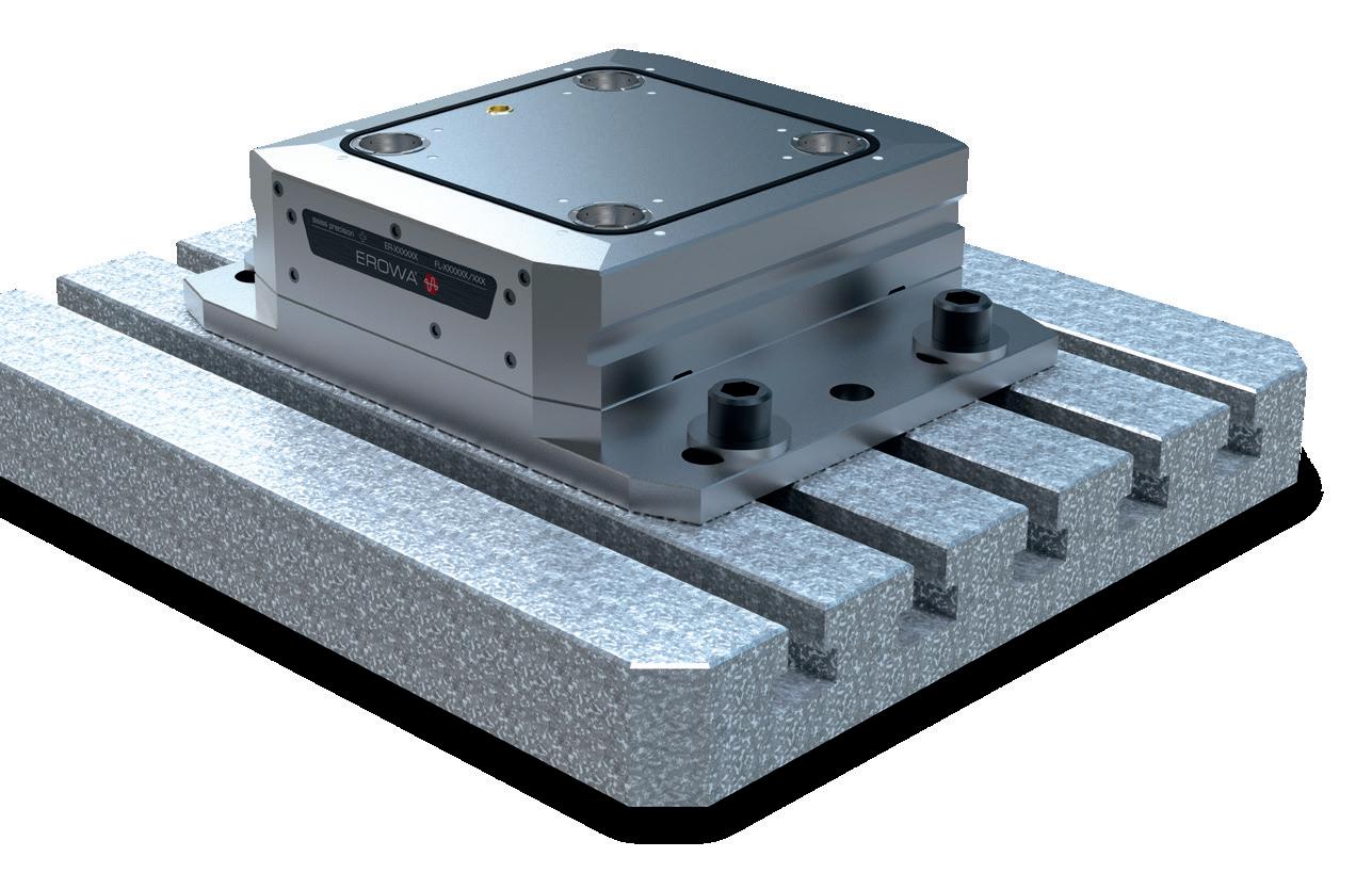 Ein besonderes Merkmal des EROWA Giant Tooling Systems ist der «schwimmende» Spannteil. Dieses einzigartige Feature dient zur Wärmekompensation und sorgt somit auch bei schwankenden Temperaturen, z.B. während des Bearbeitungsprozesses, für gleichbleibende Qualität und Präzision.