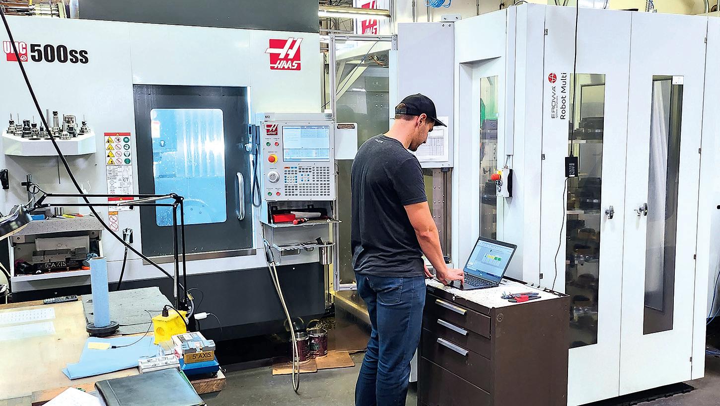 ALEXANDER WINTER: Nein, wir sind hier vollkommen unabhängig. Verschiedenen Fertigungsprozesse und Werkzeugmaschinen aller namhafter Hersteller können integriert werden. Das EROWA Prozessleitsystem JMS 4.0 steuert den kompletten Fertigungsprozess, automatisiert den Datenfluss und übernimmt die Steuerung des Roboters sowie die Datenübertragung und Kontrolle der angebundenen Maschinen.