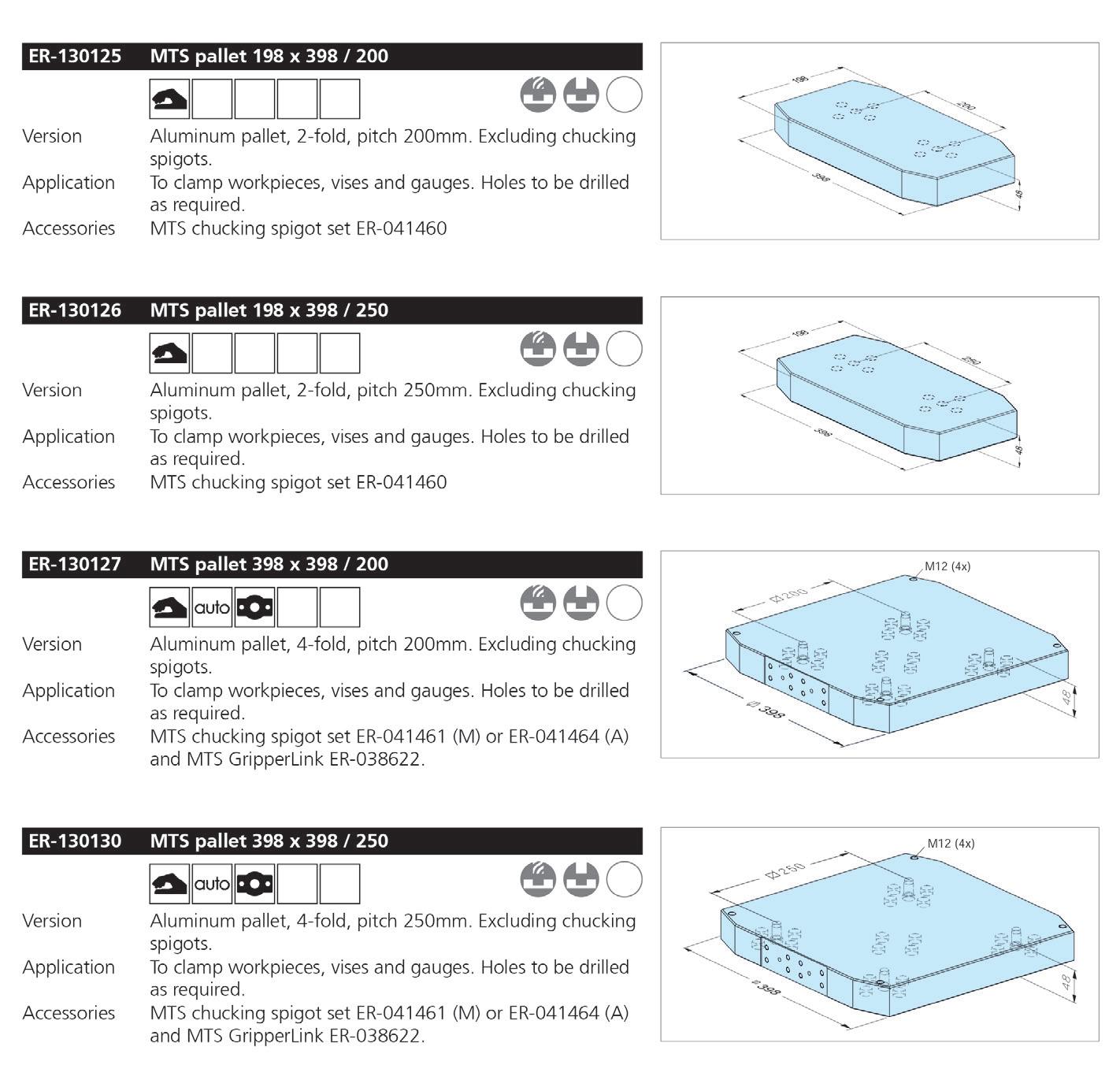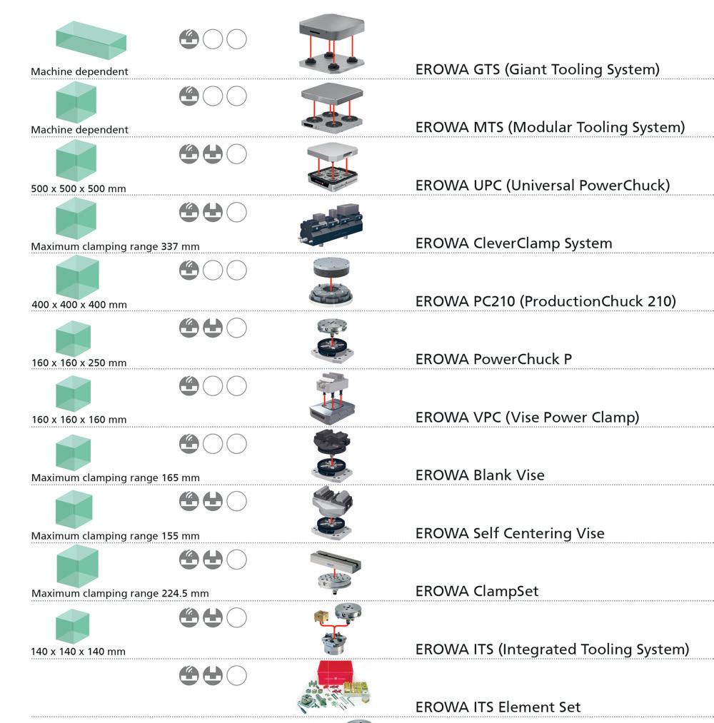 Afin d‘obtenir plus rapidement un aperçu général des diverses possibilités d‘utilisation des produits EROWA, les symboles ci-dessous sont utilisés dans tous nos documents.