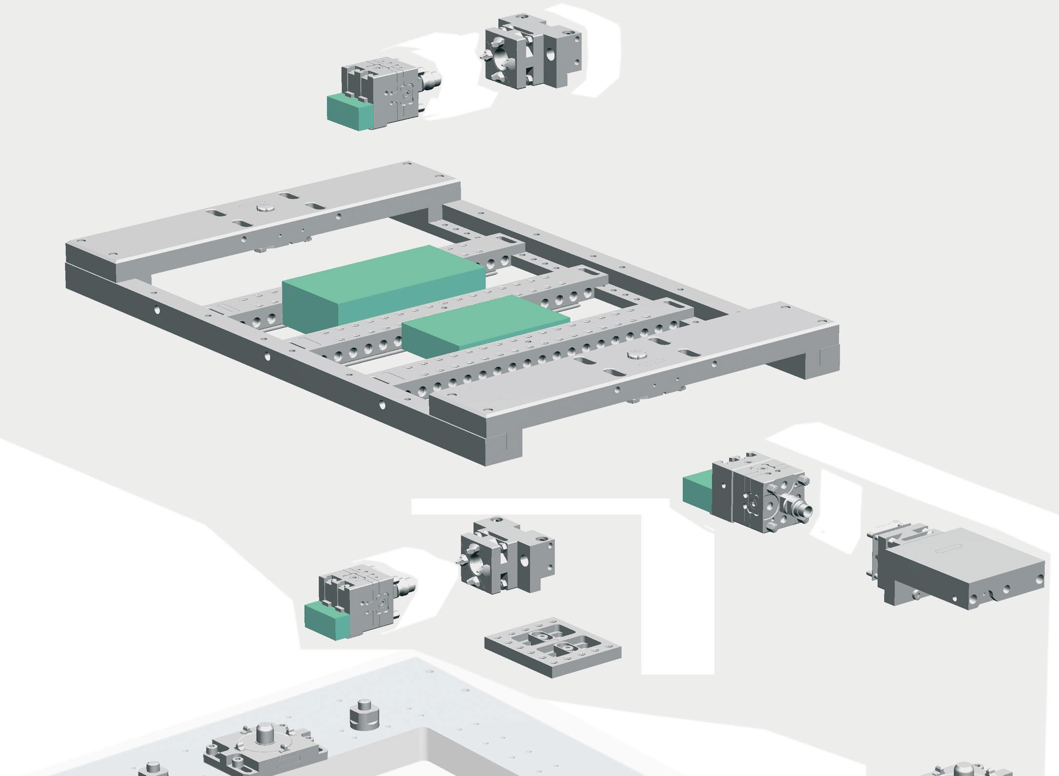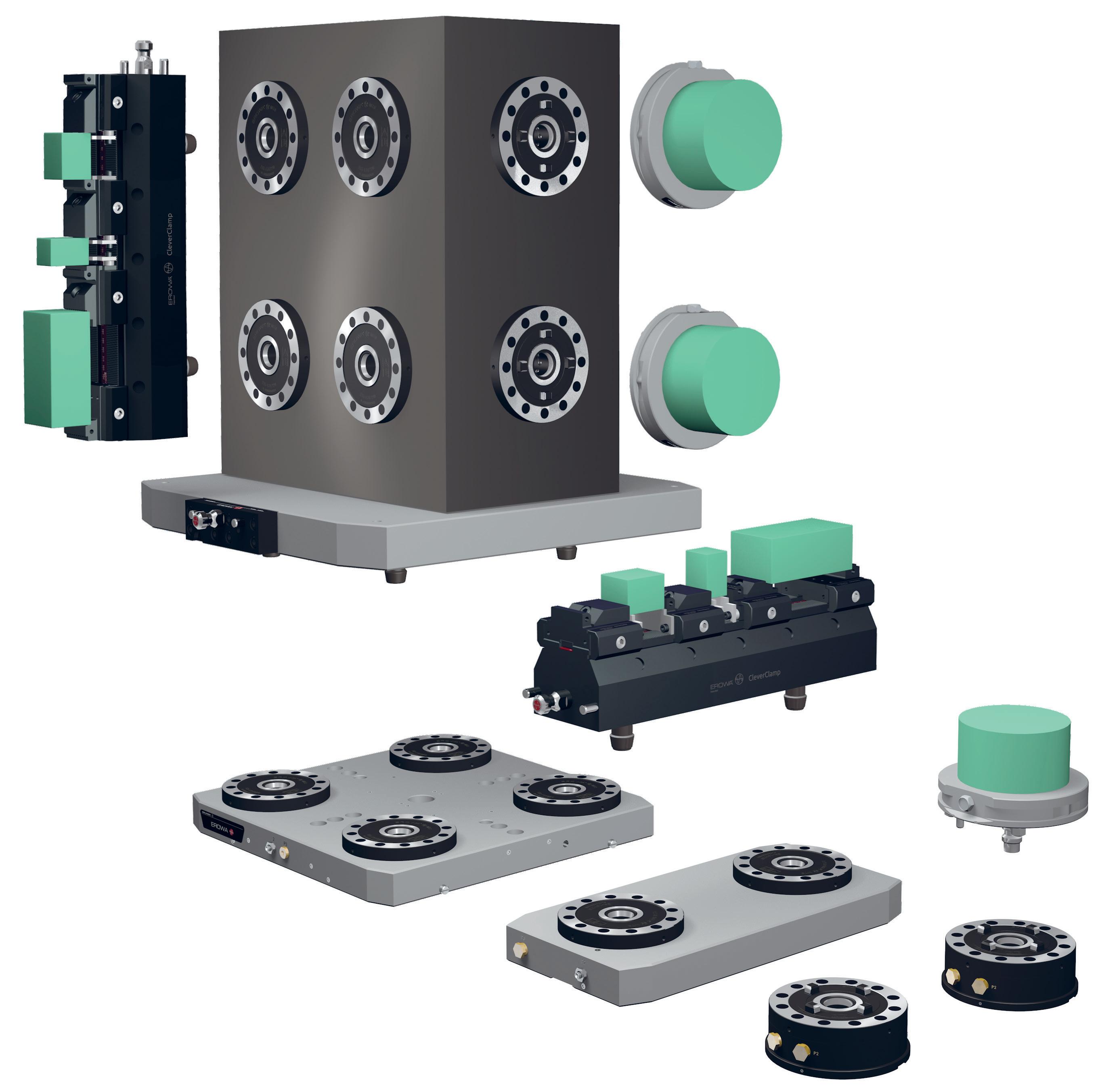 Standardisation des systèmes de positionnement pièces et électrodes. L’utilisation d’un système de serrage universel sur toutes les machines-outils permet une flexibilité totale et supprime complètement les temps de montage sur machine.