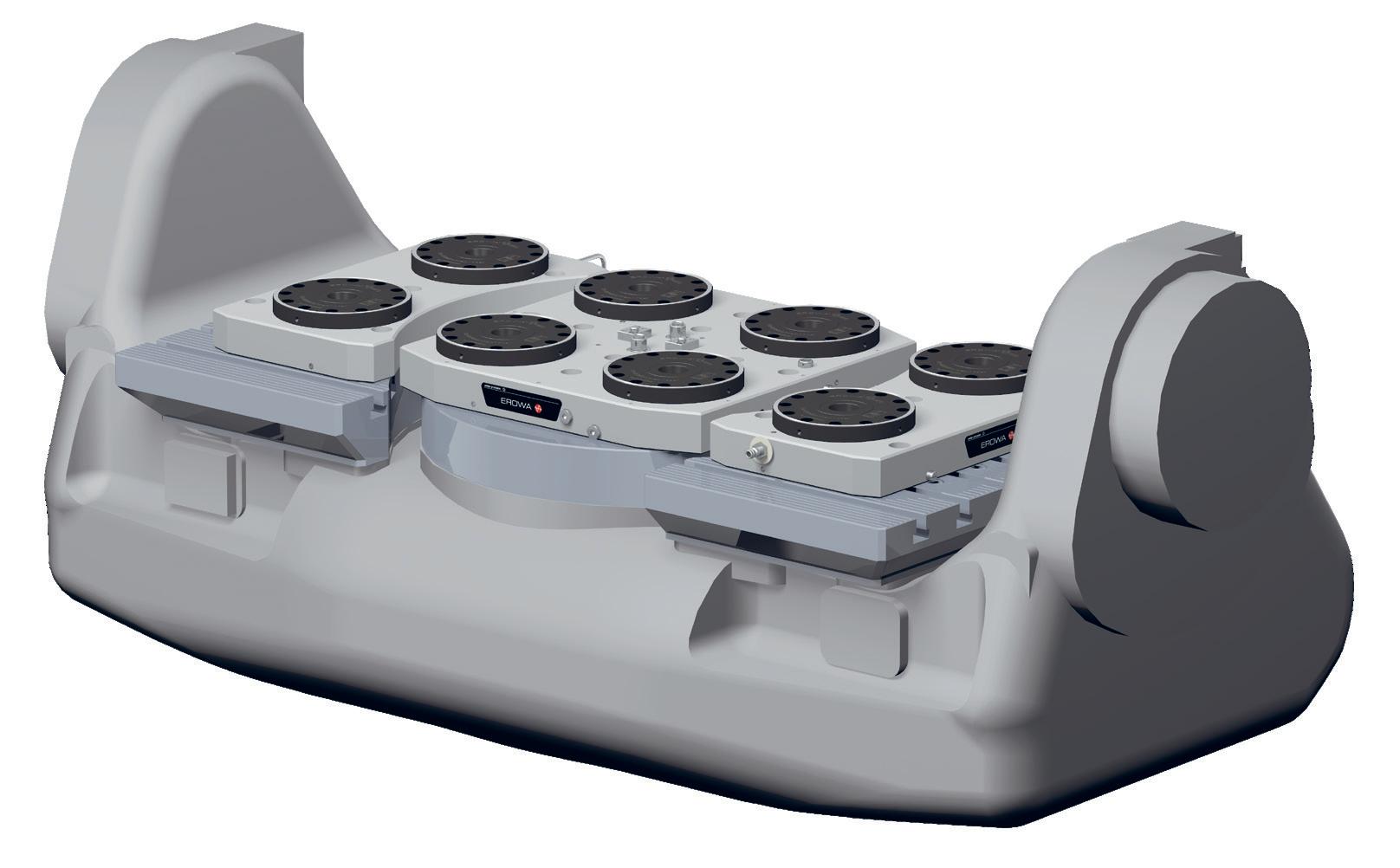 Le nouveau système breveté EROWA Giant Tooling System définit de nouvelles normes en matière de serrage sécurisé de pièces lourdes et de grande taille. Idéalement conçu pour les applications rotatives telles que les opérations de fraisage et de tournage, il vous permet de relever les défis de l‘usinage lourd sans effort grâce à sa grande précision et à sa stabilité.