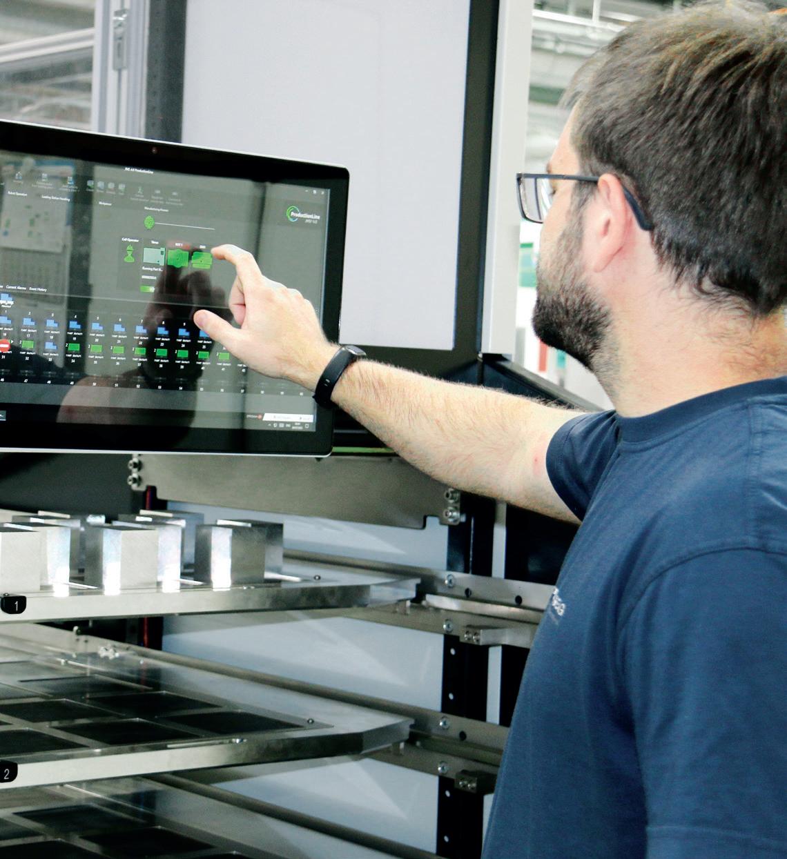 le système de contrôle : les pièces palettisées sont alimentées de manière flexible et non linéaire vers la machine de mesure – et contrôlées pendant la nuit. Cela permet de soulager ce qui est notre goulot d‘étranglement : la mesure pendant la production.