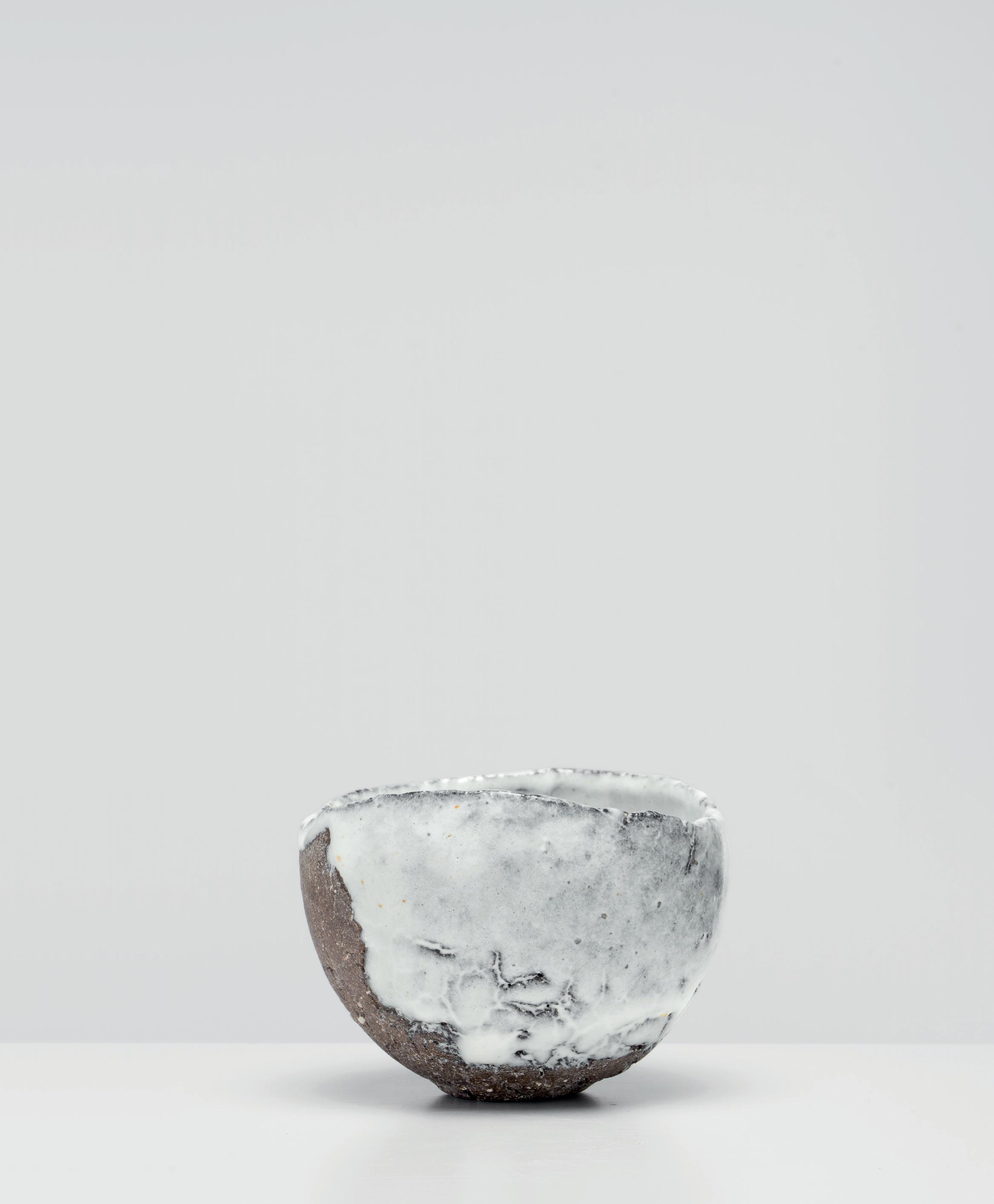 For her second exhibition at Erskine, Hall & Coe, Machiko Ogawa has created two distinct bodies of work: eight teabowls in luminous platinum and white glazes, accompanied by five standing abstract forms in a striking blue, full of vitality and energy.