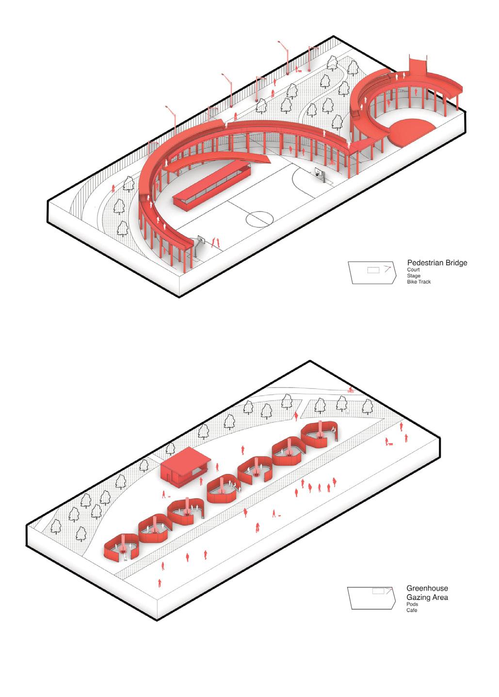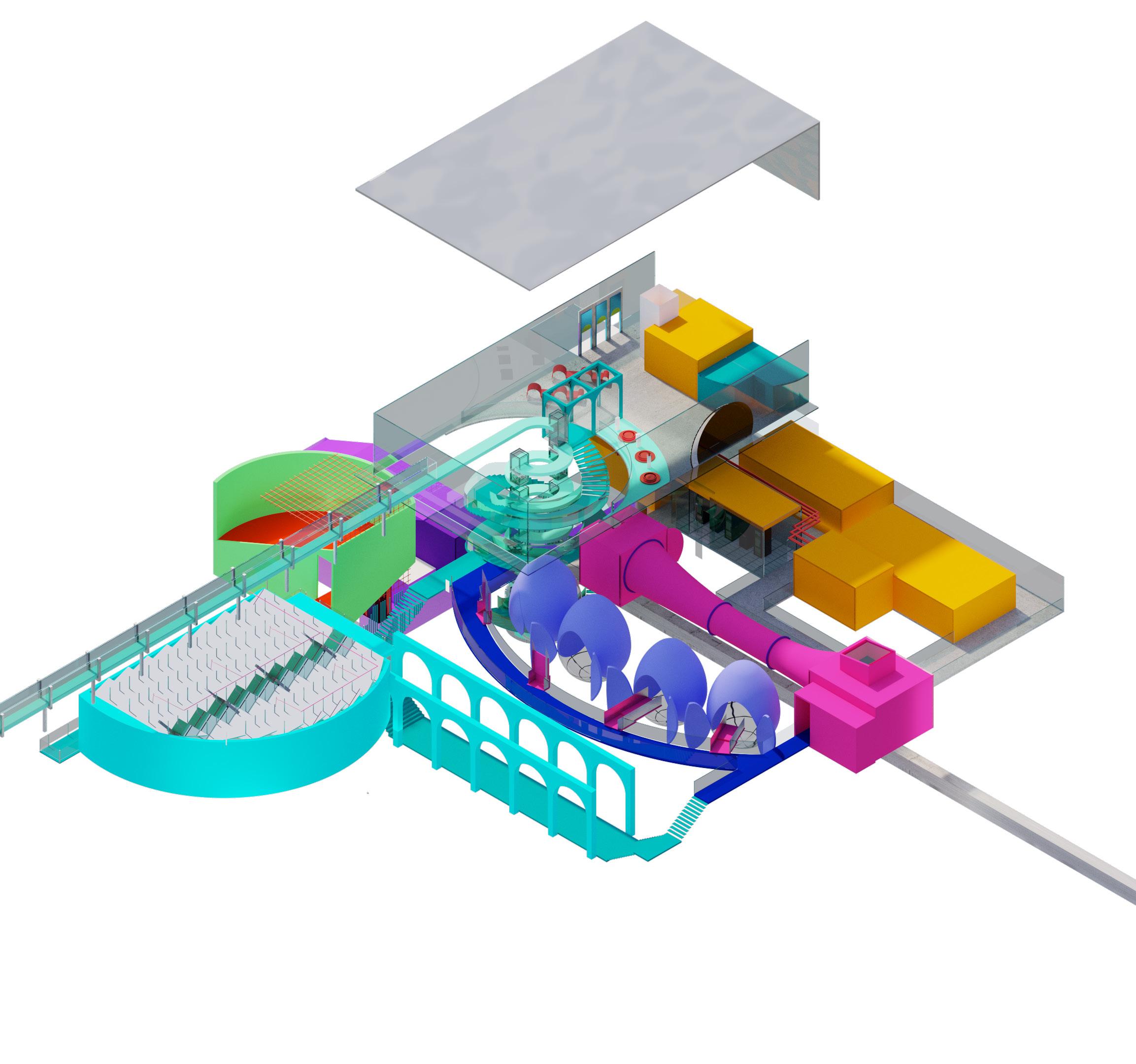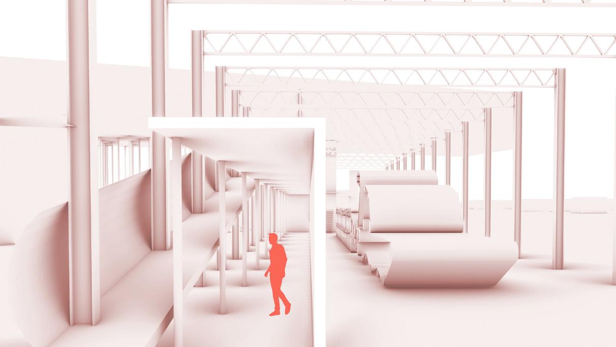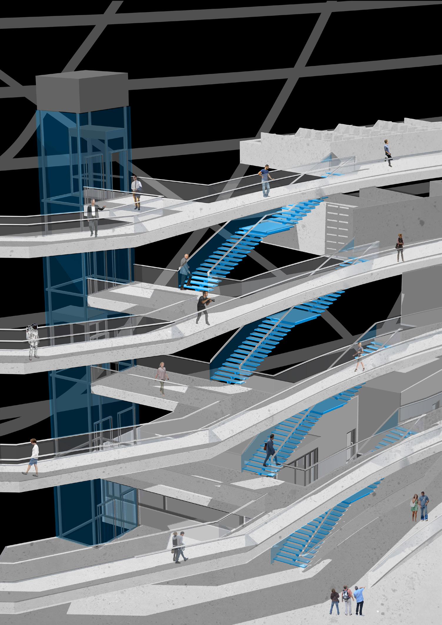 laws, undergo a transformative process through the individual spatial addition, developed throughout this one year research. In relationship to the student’s speculative scenario and their script, these spatial hacks differentiate themselves clearly from the selected superinfrastructure, by demonstrating well curated protocols of action and function, a distinct spatial strategy as well as a communicative capacity, as Schumacher formulates it.
