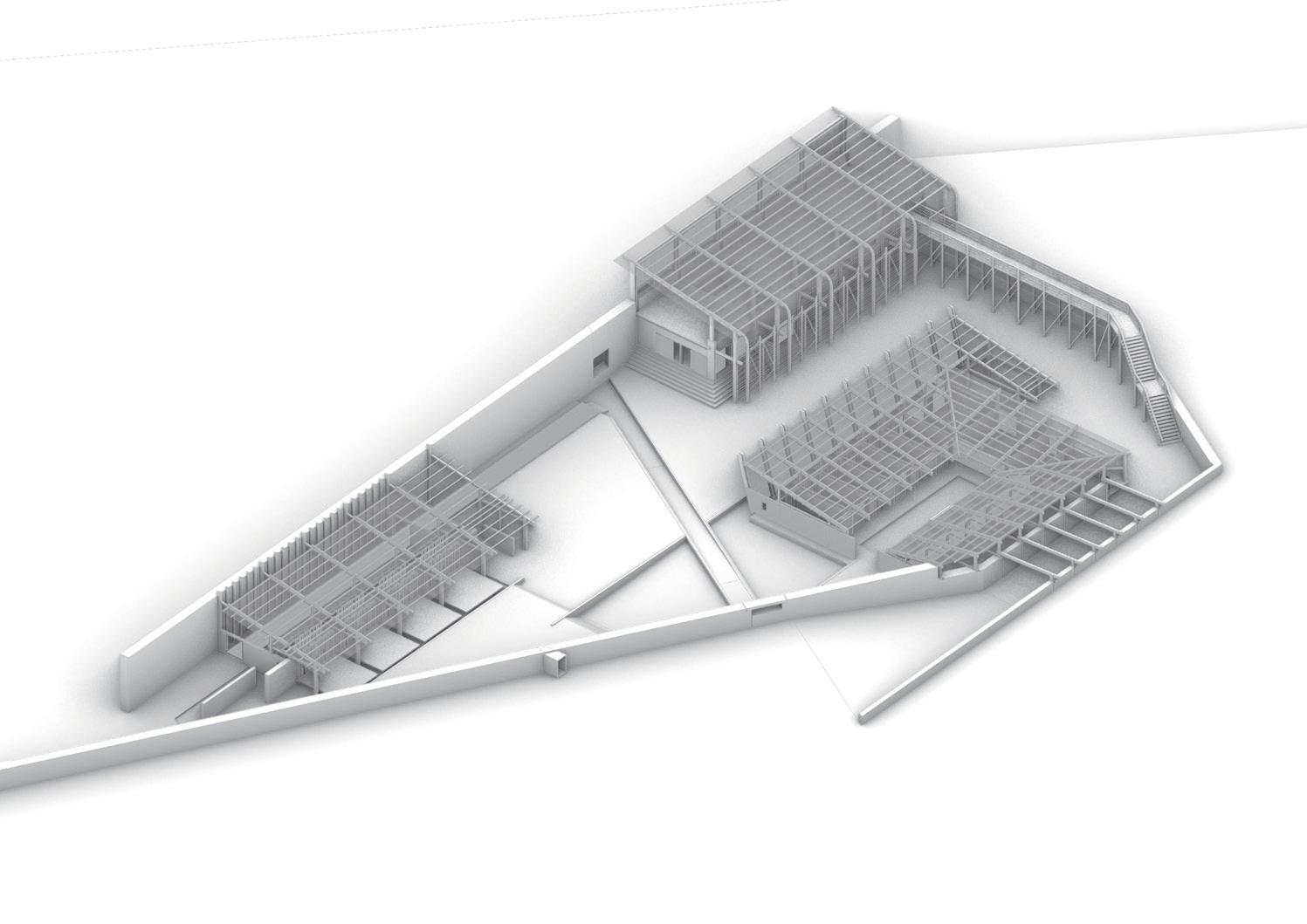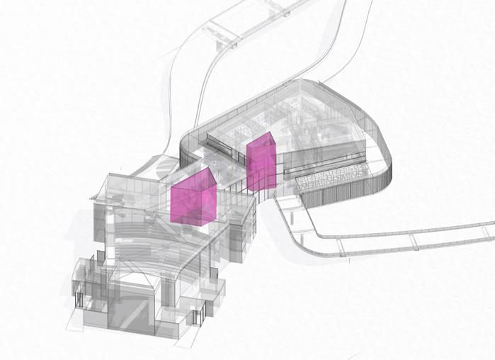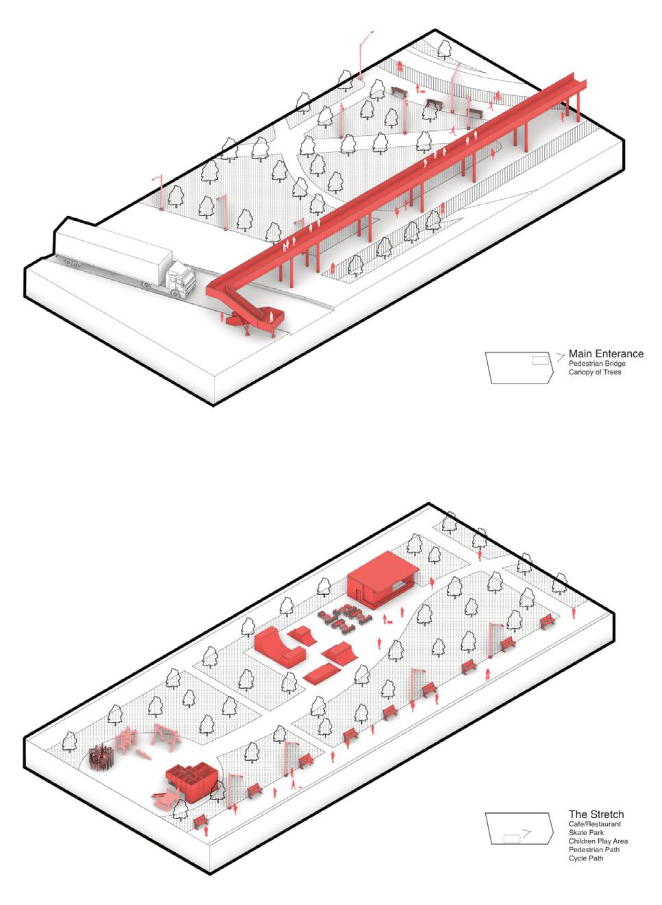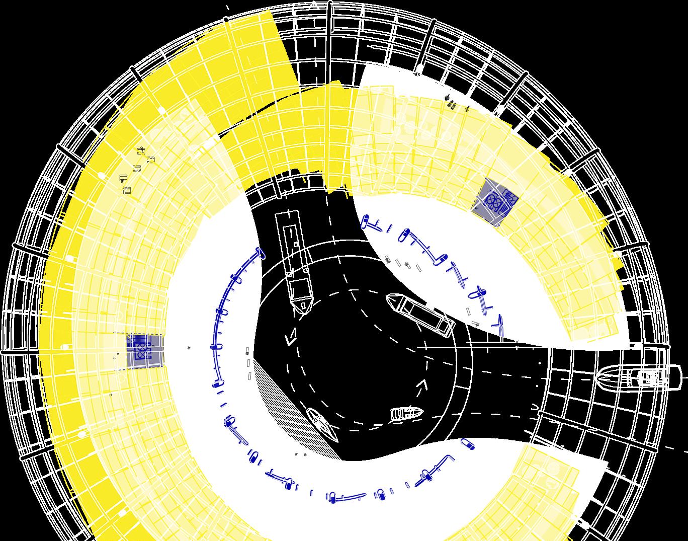 laws, undergo a transformative process through the individual spatial addition, developed throughout this one year research. In relationship to the student’s speculative scenario and their script, these spatial hacks differentiate themselves clearly from the selected superinfrastructure, by demonstrating well curated protocols of action and function, a distinct spatial strategy as well as a communicative capacity, as Schumacher formulates it.