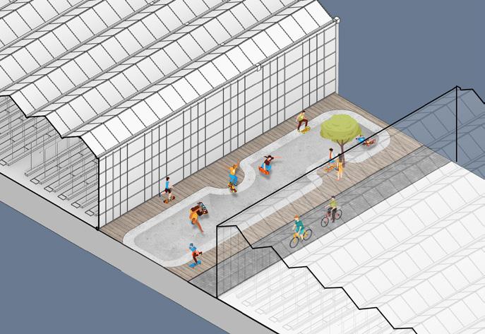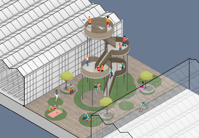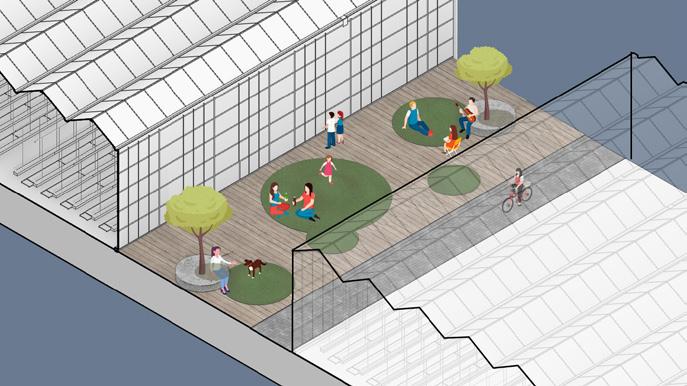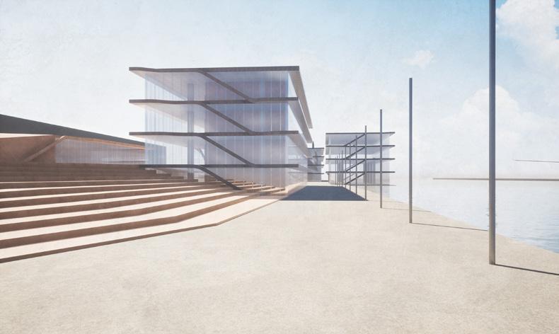 The Quarantine District will continue to work as a green lung within the port and offer a unique experience between the artist village and innovative greenhouse hemp production facilities. A new pier is placed at the quarantine beach allowing good access from the waterfront and quarantine bridge.