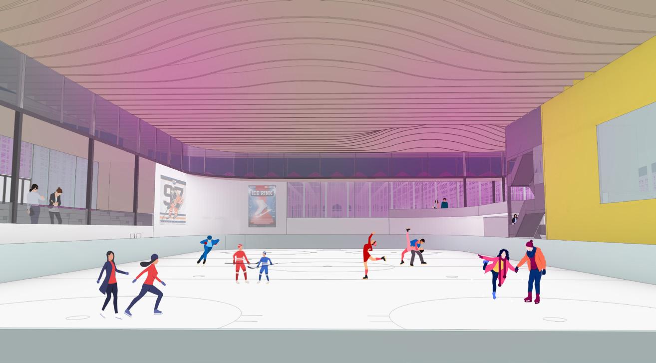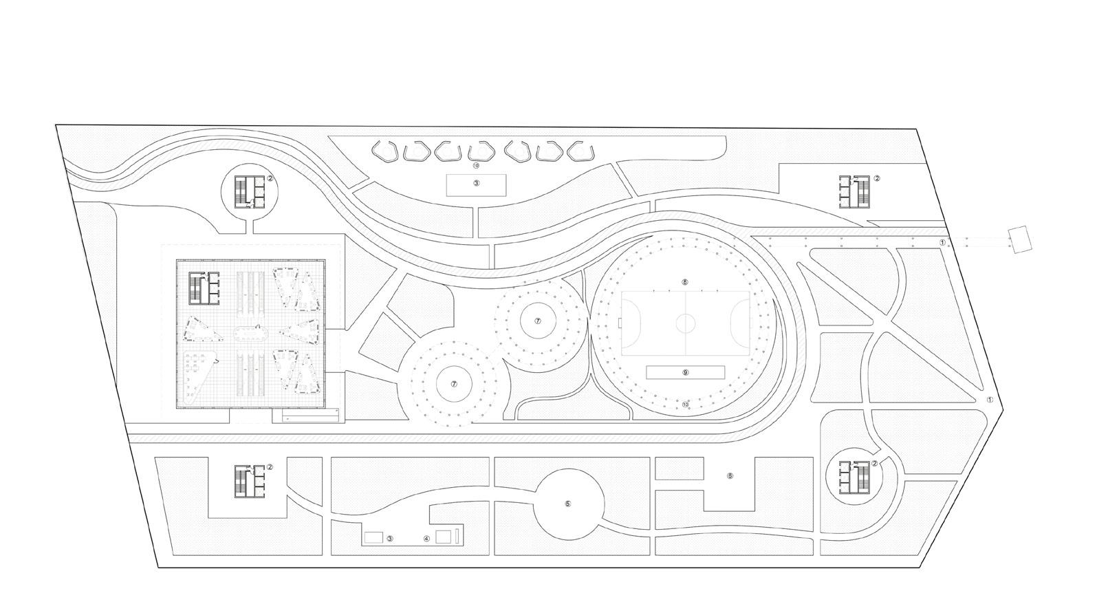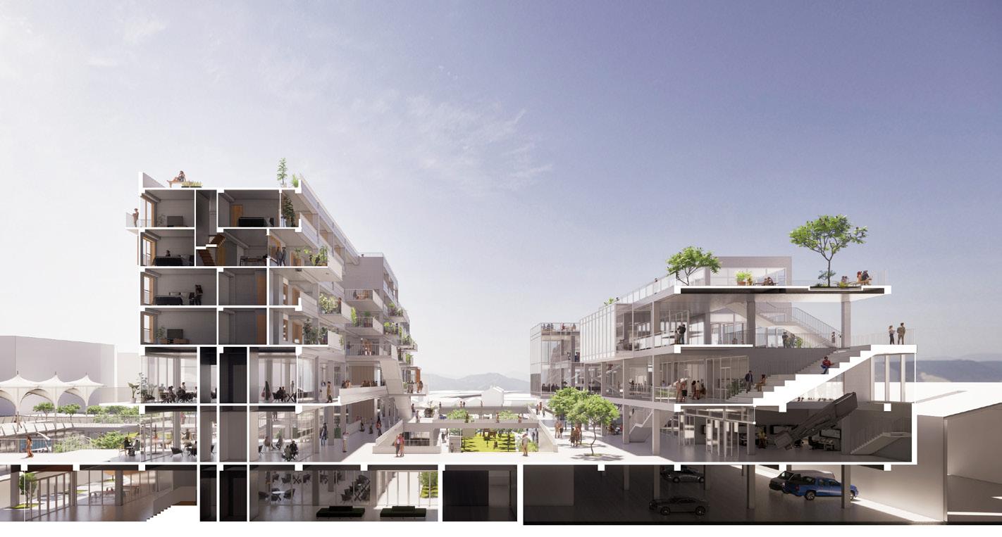 The community centre’s architectural and material language creates a blur between the surroundings and the building itself, with varying roofscape, greenery and glass effects, merging it with the surroundings. Alongside a series of energy-making urban components to be deployed into the fabric of the neighbourhood through a plaza, using architecture as an environmental device.