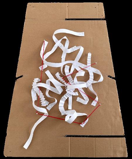 In this model, with reference to Jane Jacobs' urban theories from 'The Death and Life of Great American Cities', we aimed to explore how the interior of Custom House integrates into the urban network. We have categorized the turns within the model into three types: urban street turns, building interior turns, and internal turns, using different colours to distinguish them. We then established connection routes between these categories using threads of different colours.