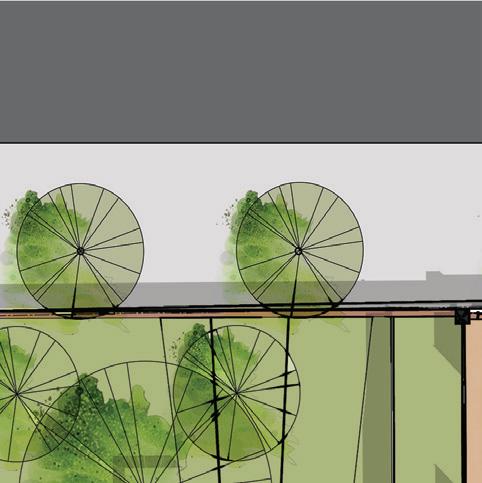 A grove of Ash Trees sits on the Western Front of the Building, providing shading as well as a community space with the neighborhood. The greenhouse at the top prioritizes the growth and preservation of Ash Tree seeds and saplings to be given back to Chicago’s cityscape. In addition to Ash Trees, space in the greenhouse can be used to grow produce by which a street-front market facilitates the sale of locally grown produce back to the neighborhood, providing funding for the Ash Tree Preservation Project.