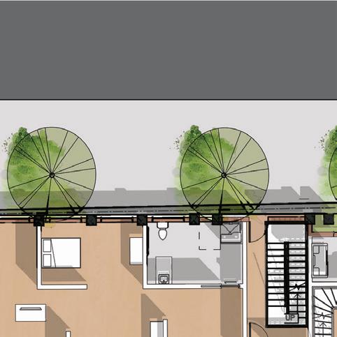 TYPE A 1200 SQFT UNITS TYPE B 9001200 SQFT MEETING PLACE FORCOMMUNITY DECISION MAKING| STUDIOS FOR RENT 1000 SQFT CONFERENCE HALL UNITS UPPER FLOORS Section Perspective, looking West ADVANCED ARCHITECTURAL DESIGN STUDIO V (URBAN) + ANSOC 365: CITIES & SOCIETY SPRING 2023 URBAN SOCIOLOGY