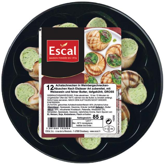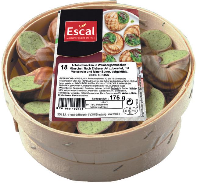 60 Weinbergschnecken, groß nach “Elsässer Art” zubereitet 400 g Nettogewicht