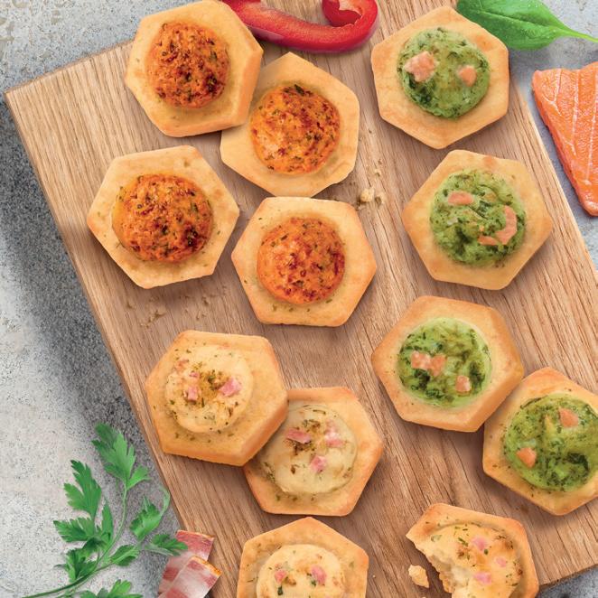 26 Blätterteighäppchen nach provenzalischer Art Tapenade –Tomate/Basilikum –Mit Paprika – Mit Erbsen und Minze 320 g Nettogewicht