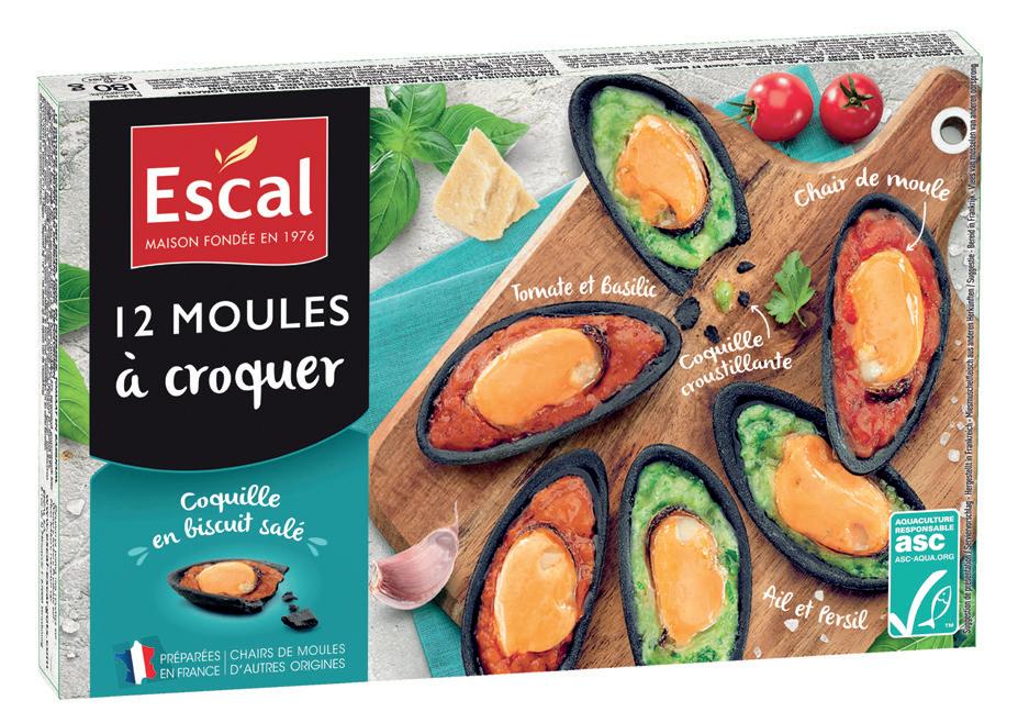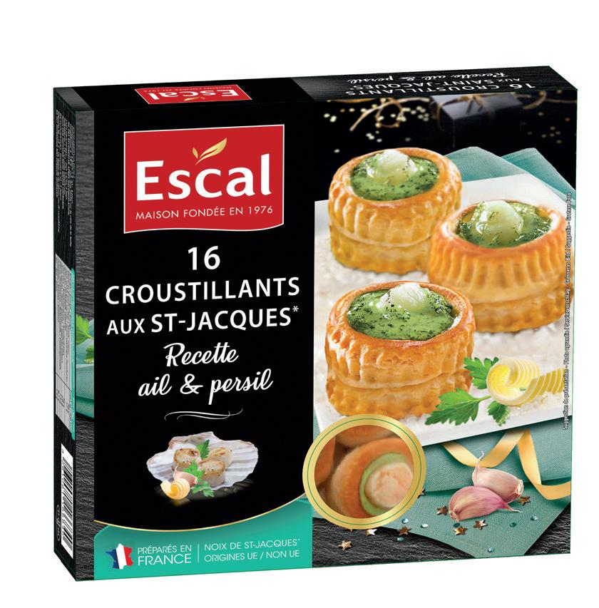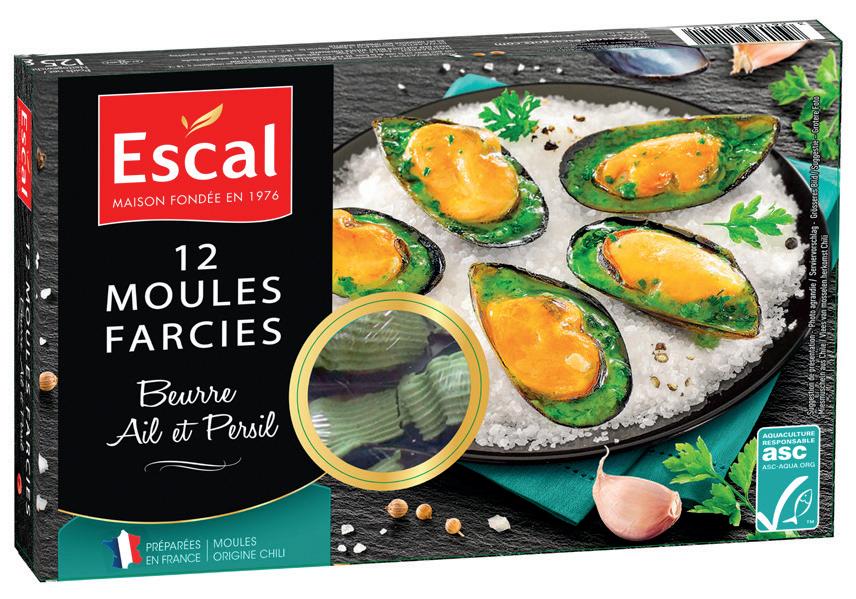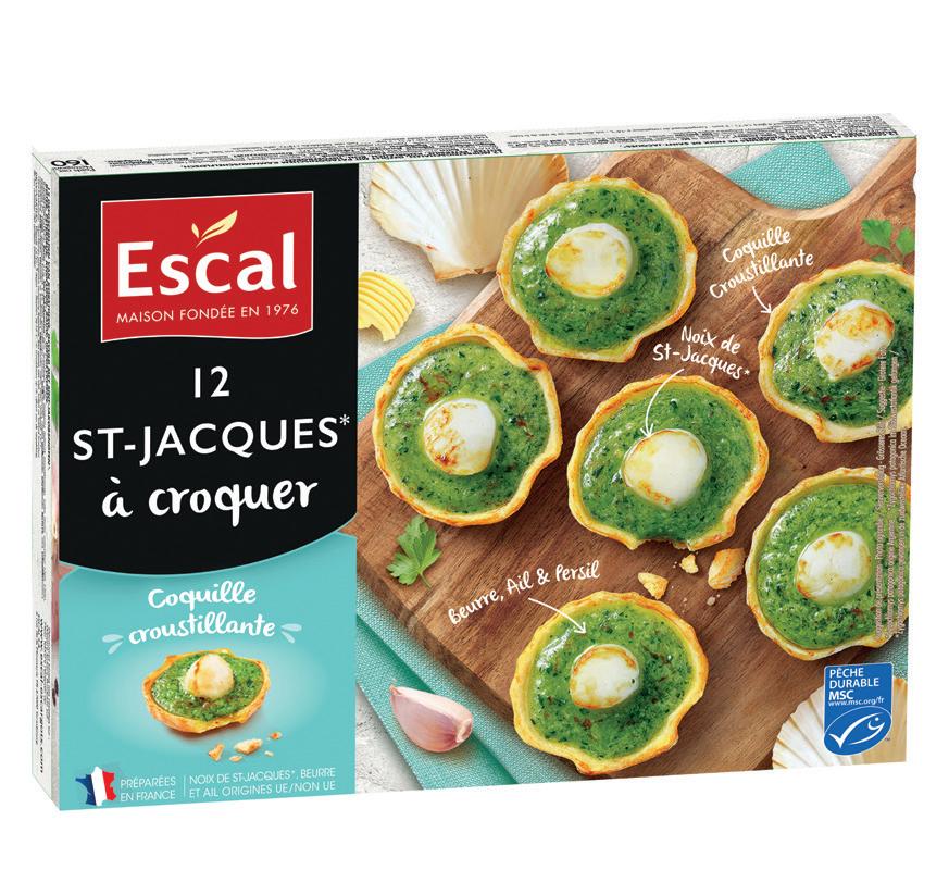 12 crispy wafer shells, with scallops, butter, garlic and parsley