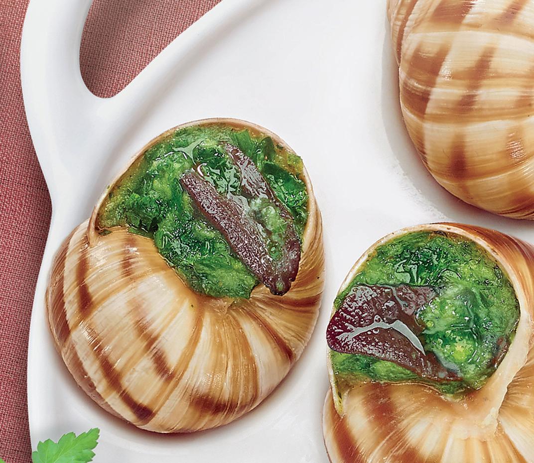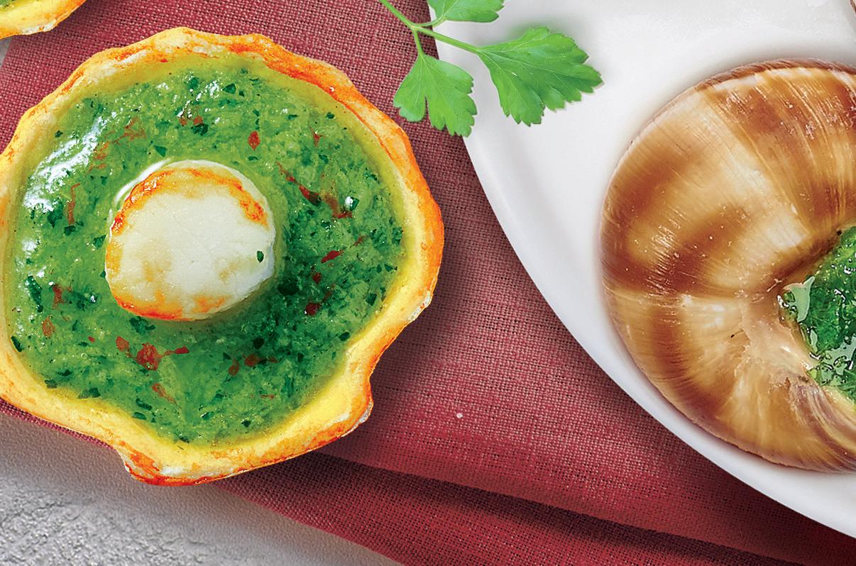12 escargots « à la Provençale » in crispy salted wafer shells