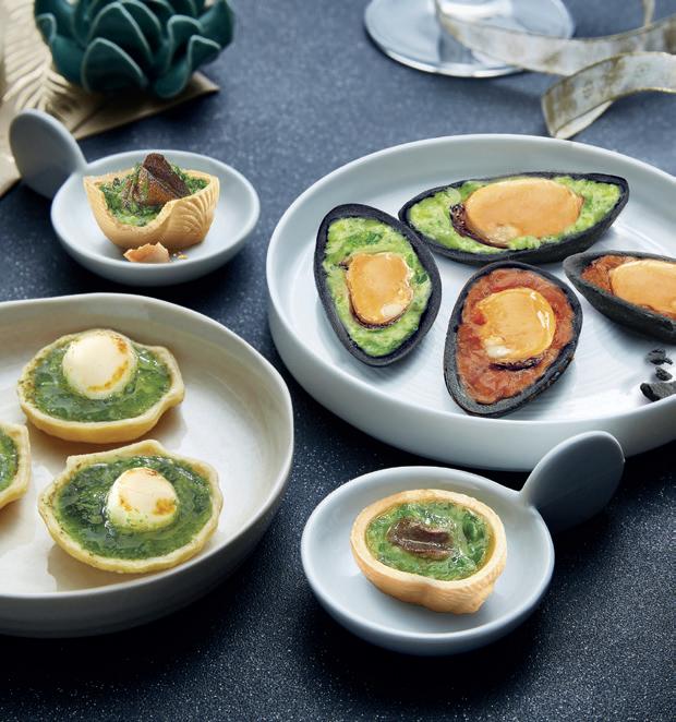 Buckwheat & Poppy Seed Pastry Salmon & spinach, Bolete & cep, Poivronade