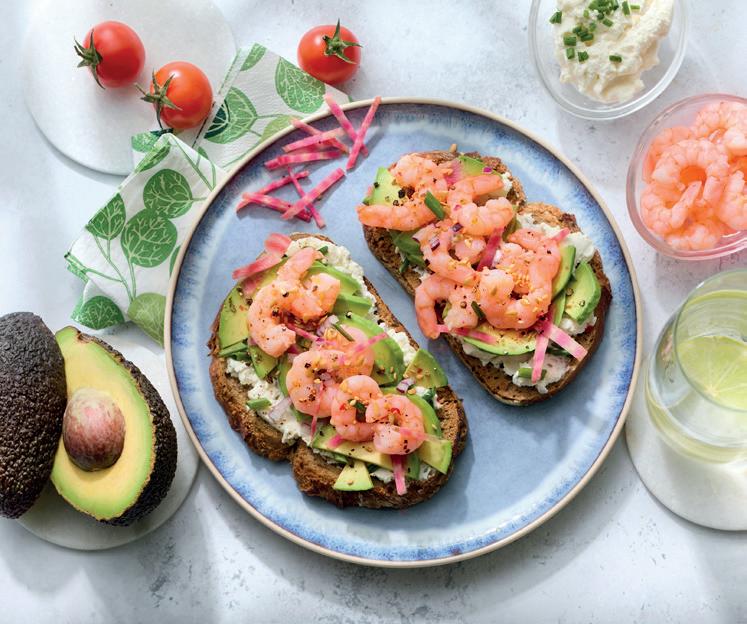 Avocado toast with prawns