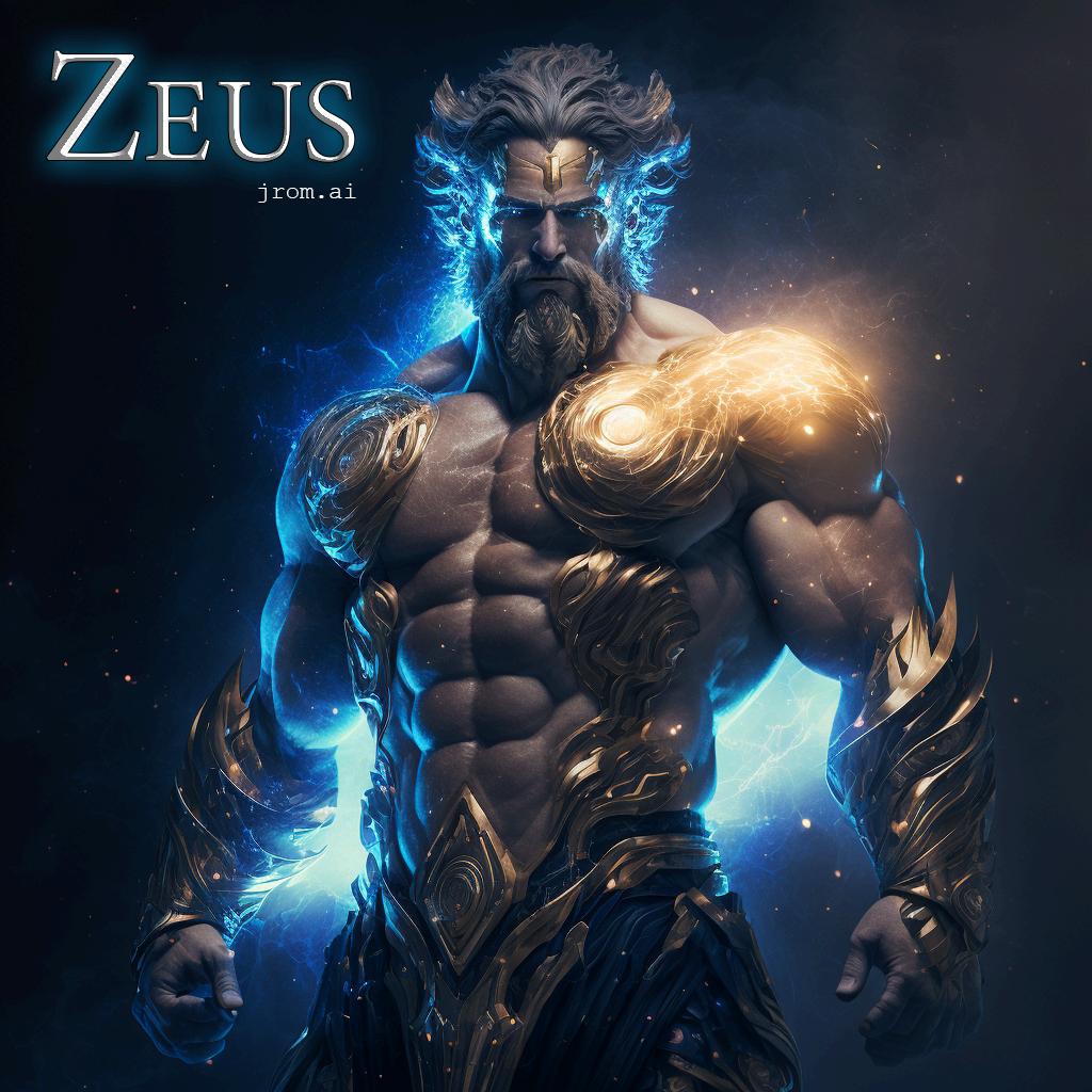 Zeus es uno de los mayores dioses, es hijo de Crono y de Rea. Esencialmente es el dios de la luz, del cielo sereno y del rayo.