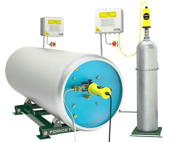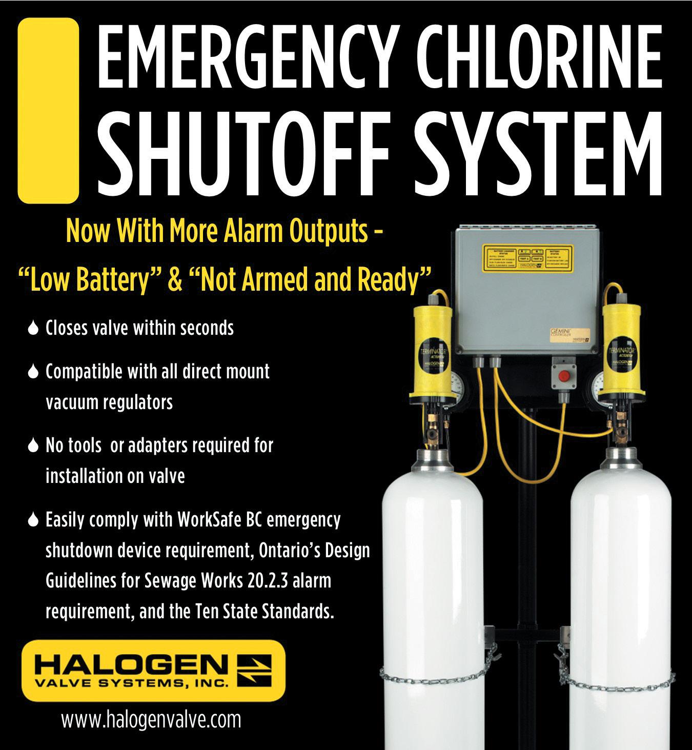 The Terminator™ Actuator from Halogen Valve Systems can be used on chlorine ton containers and 150 lb cylinders to instantly stop the flow of chlorine in case of an emergency. Shutoff is initiated when the controller receives a close contact signal from a leak detector or included emergency shutoff switch.