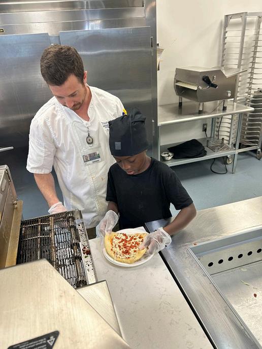 Following instruction in basic kitchen safety, campers engaged in hands-on cooking sessions focused on healthy, budget-friendly recipes they could easily replicate at home. Dishes prepared included flatbread pizza, meatballs, and ramen, promoting both confidence and independence in the kitchen.