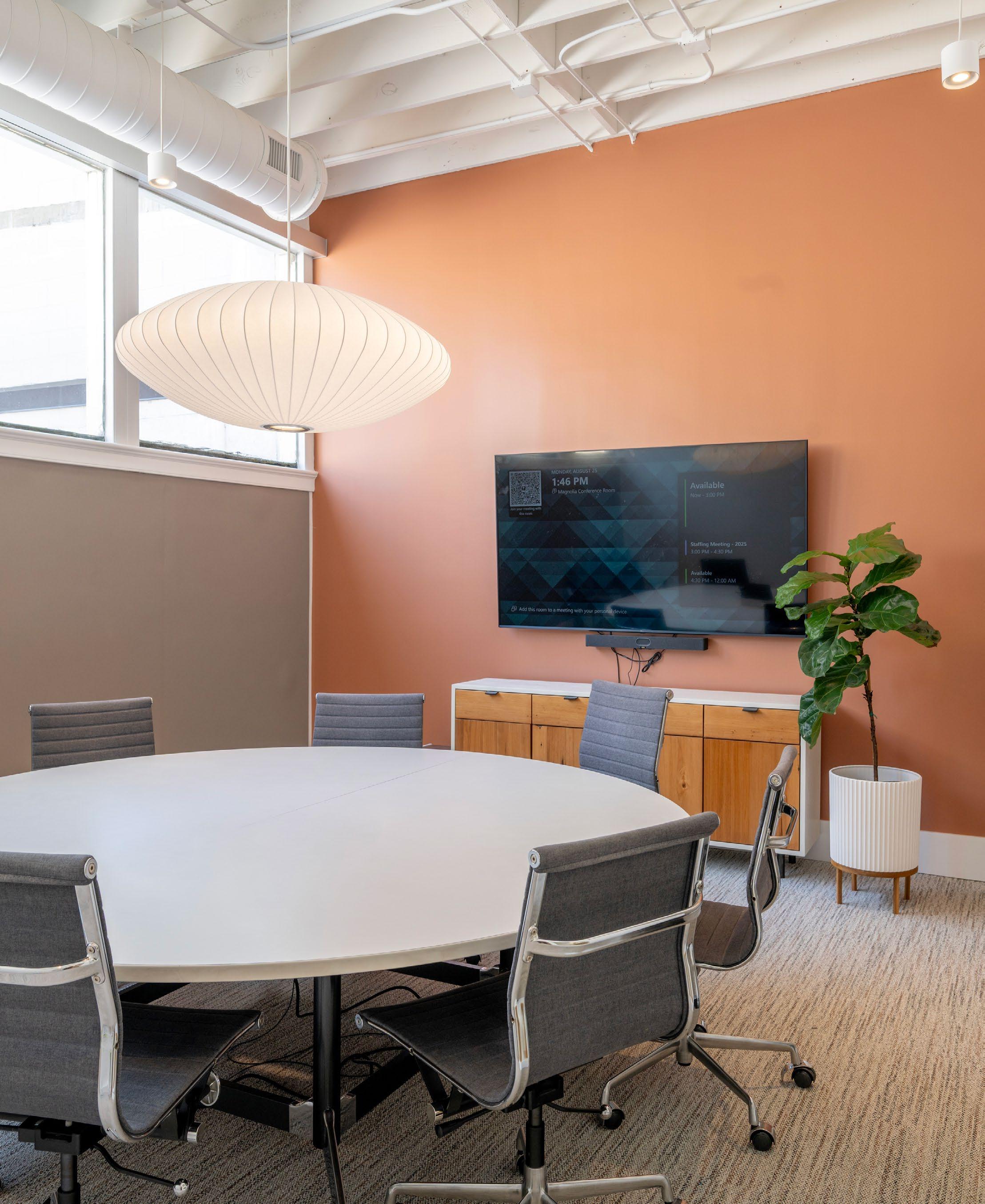 Comfort and environmental quality were equally prioritized. Operable shades and individual thermostats give users control over light and temperature. Ergonomic seating, layered with plantings cared for by our instudio Plant Squad, enhances comfort and well-being—creating meeting environments that are as pleasant as they are productive.