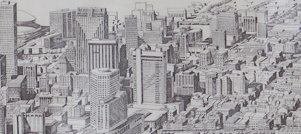With final dimensions of 10’-10” x 3’-2”, the artwork is supported by a custom plywood subframe, designed much like a vierendeel truss, then clad with masonite. The drawing is mounted with linen tape and protected with acrylic. The frame itself is crafted from solid white oak, planed and laminated to achieve the required cross-section. All joinery is concealed using lamello biscuit joints and pocket-hole screws, allowing the entire piece to be fully disassembled, an intentional “design for disassembly” gesture that reflects our commitment to craft, reuse, and thoughtful detailing.