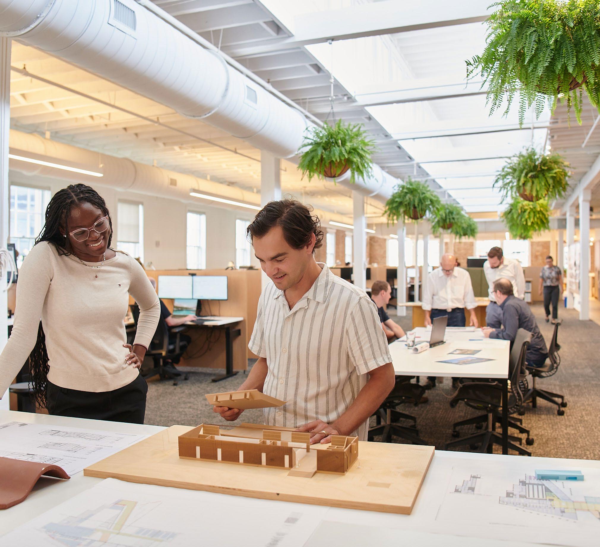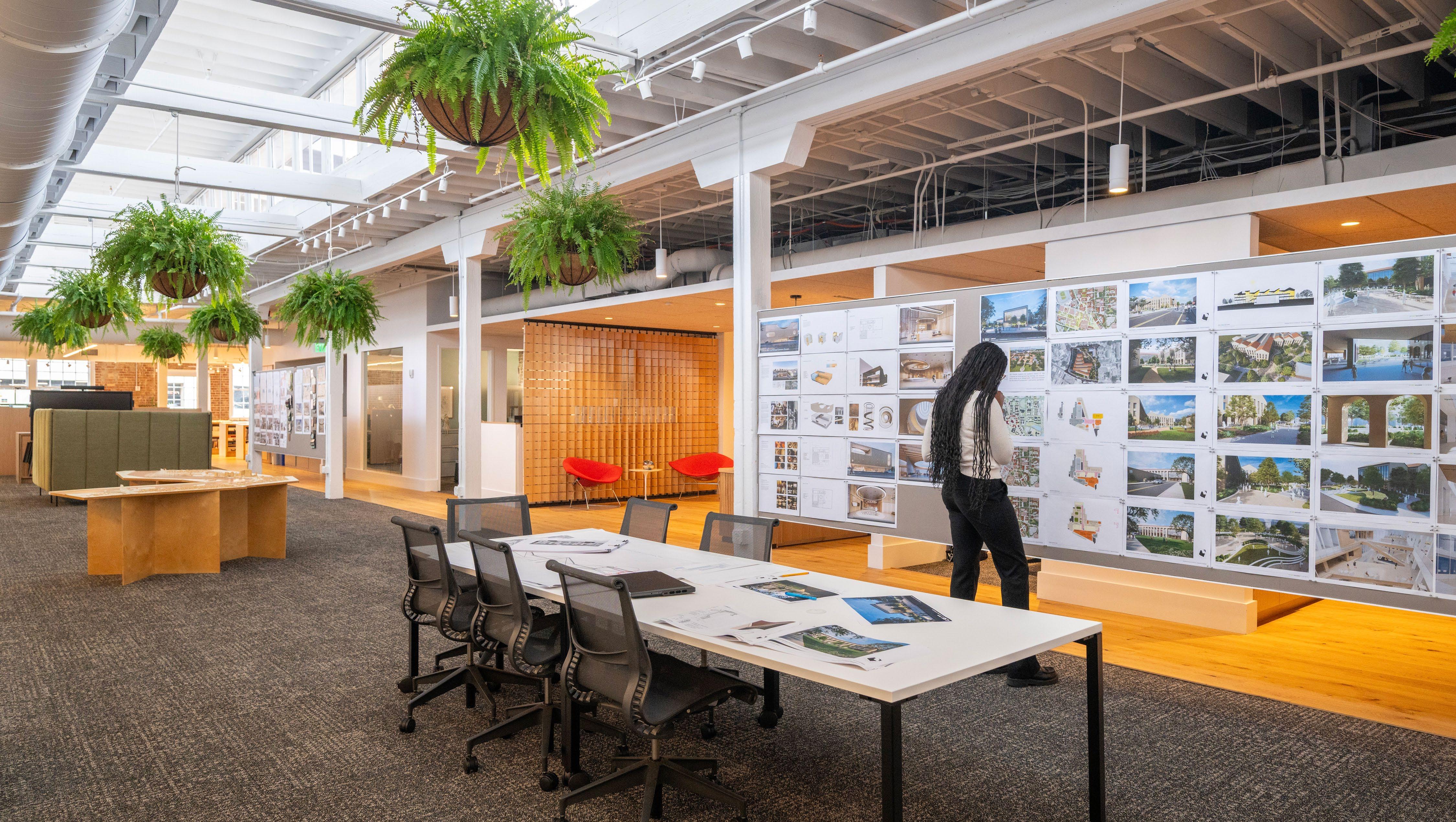 Programming and stakeholder engagement drive decisionmaking on every project—and our new studio was no exception. We began the design process by surveying firm members to workspace. Through workshops, brainstorming sessions, and and acoustics to collaboration zones and communal spaces. This collective effort ensured that the design reflected how we