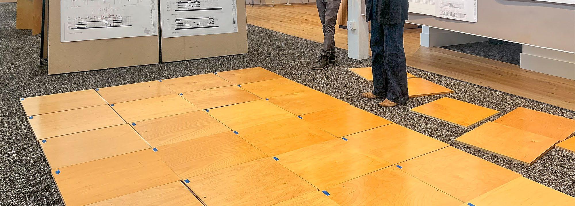 Titled The Plus is Us, the winning concept took inspiration from the “+” in our logo: a symbol of the collective contributions that make our work possible. Drawing on this idea, the wall’s design transforms reclaimed materials from our previous Canal Street office into a new centerpiece for the entry sequence, illustrating both the continuity of our history and our commitment to reuse and resourcefulness.