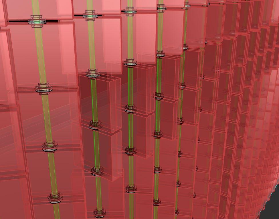 The process generated not only the geometry of over a thousand modular wood blocks, but also the 3D-printed connectors that hold them in place. By embedding fabrication data directly into the model, the team could quickly test variations, optimize connections, and prepare files for production.