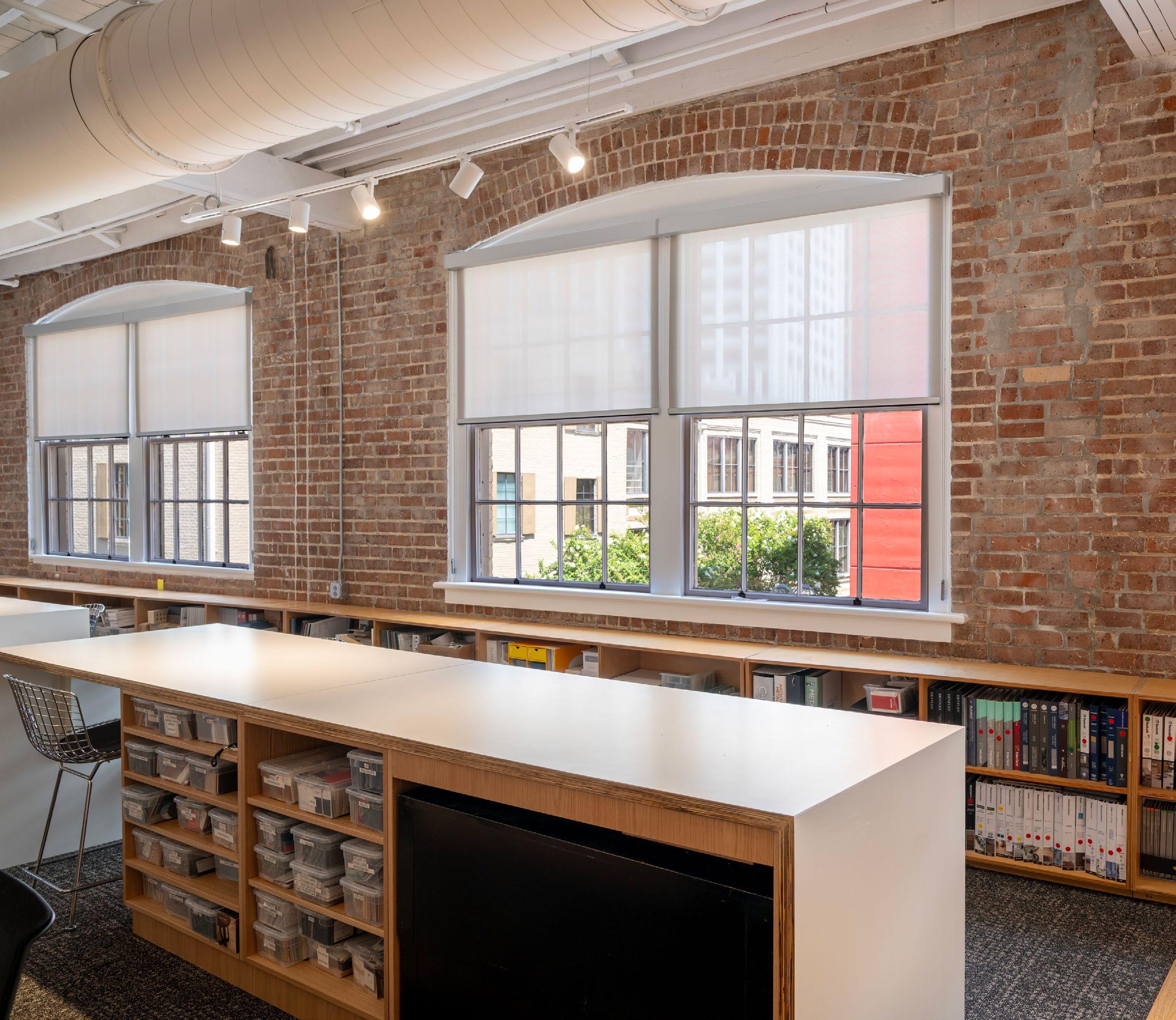 Large operable windows fill the room with natural light, while roller shades allow for comfort and control throughout the day.