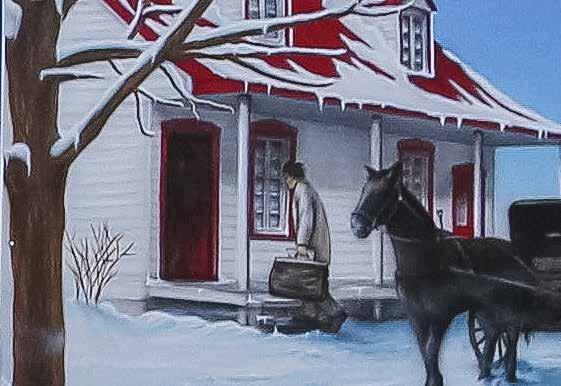 Skating on the pond has been a local pastime for decades. Featured within this artwork are skaters from different eras. The old Stony Plain railway station looks over the pond, and the community’s first hotel, school, and grain elevator are pictured in the background.