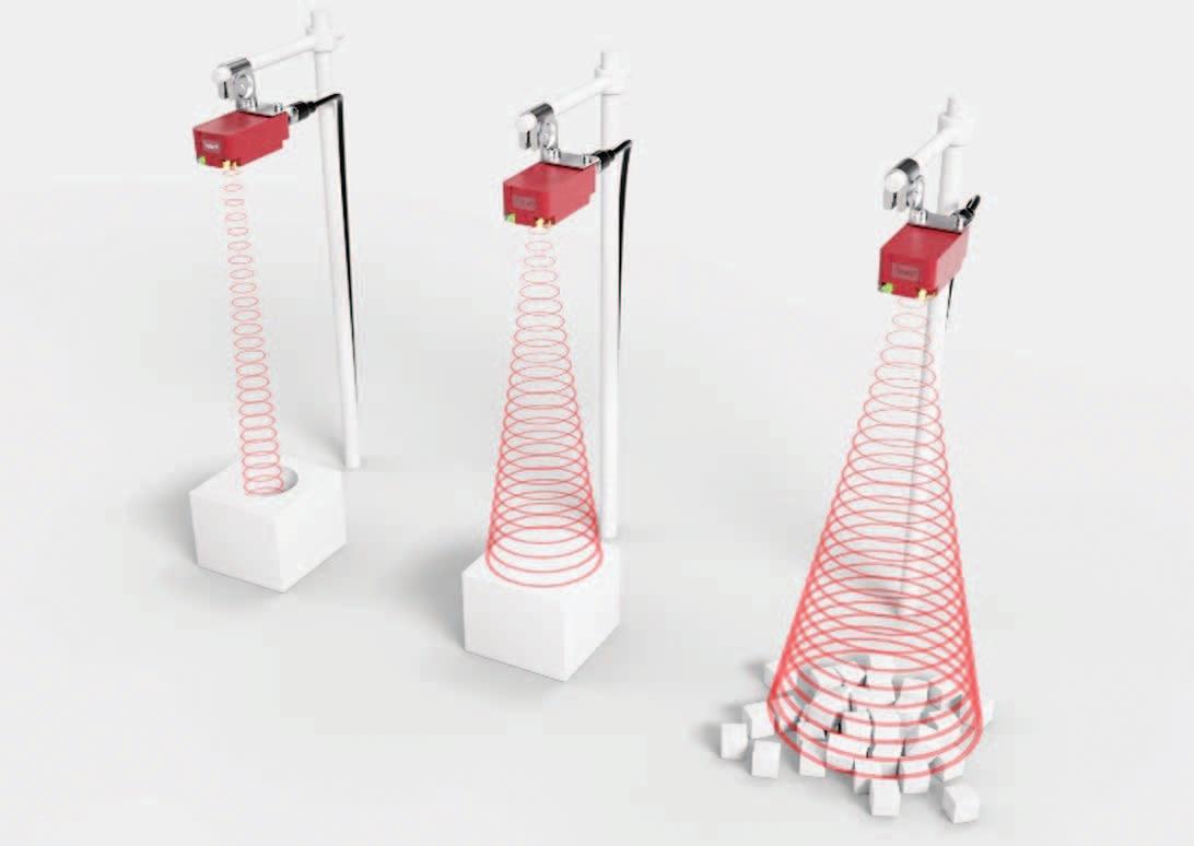 Prin interfața IO-Link, conul sonor poate fi ajustat în trei domenii: îngust, mediu și larg. Unda sonoră îngustă poate fi utilizată, de exemplu, în aplicații de control nivel, prin orificii ale recipientelor, pe când cea largă, se utilizează în aplicații de măsurare la distanță sau pe suprafețe largi și cu geometrii complexe.