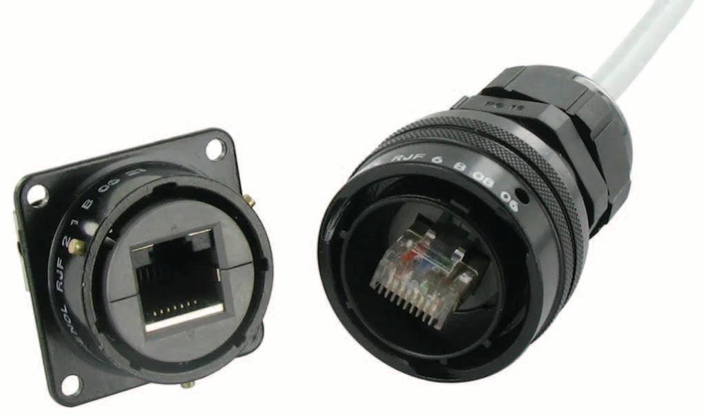 Conectorii RJ45, folosiți pe scară largă pentru conexiunile Ethernet (exemplu număr stoc RS 798-0701), asigură o transmisie fiabilă a datelor, făcându-i o alegere ideală pentru o gamă largă de aplicații, de la rețelele de casă până la rețele de scară largă. Conectorii pot fi furnizați atât în versiuni cu baionetă, cât și în versiuni de blocare cu filet, versiuni ecranate și neecranate cu clase de protecție IP67/IP68 (conectat sau neconectat), oferind rezistență la apă. Pot fi oferite, de asemenea, versiuni cu montare de panou, versiuni turnate cu cablu deja montat, soluții ce pot fi instalate pe teren, precum și soluții rezistente la UV.