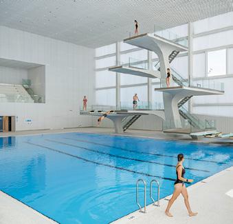 Basée à Givisiez, Myrtha Pools (Switzerland) SA a conceptualisé et réalisé trois bassins du Centre sportif La Vaudoise Arena de Malley, à Lausanne. La fosse plongeon est équipée de trois coussins d’air de protection. Le bassin olympique intègre un mur mobile divisible, permettant de scinder le bassin principal en deux bassins de 25 m ou d’offrir simultanément des lignes d’eau de 25 et 50 m. Le bassin combiné bénéficie, lui, d’un fond mobile sur la surface du 25 m qui permet de modifier la profondeur du bassin. Quant à la zone loisirs, elle se compose d’une petite rivière avec un léger courant, des lits et bancs massants, des buses et des fontaines d’eau. myrthapools.com