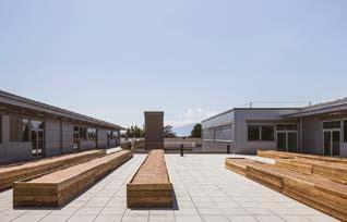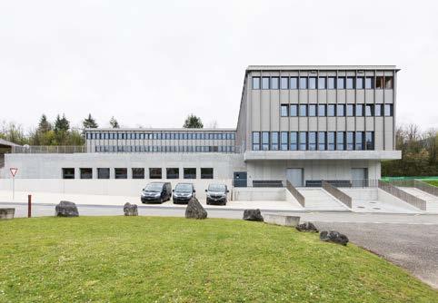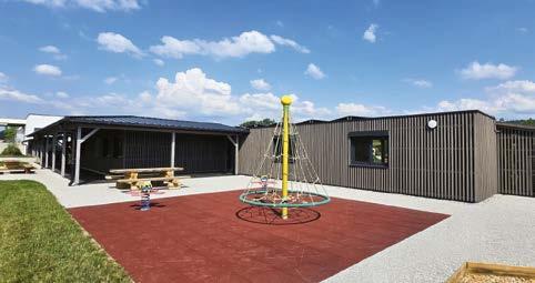 Dans la commune de La Sonnaz, le pavillon de Lossy. Une construction modulaire pour l’accueil extrascolaire et salle communale avec pompe à chaleur, grandes baies vitrées, cuisine et autres services et équipements.