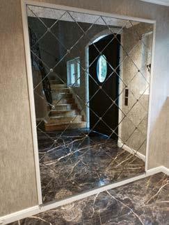 Toujours en quête de solutions innovantes, Loretti s’est spécialisée dans l’assemblage feuilleté EVA. Cette technique permet d’intégrer au verre des éléments décoratifs, tels que des tissus ou des grilles métalliques, ouvrant de nouvelles possibilités pour les portes, parois de séparation ou cabines de douche. Elle permet aussi de réaliser des parois en verre imprimé de sécurité, offrant la possibilité de préserver des aspects visuels traditionnels, notamment dans des contextes de conservation patrimoniale.
