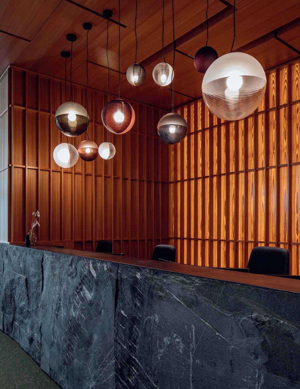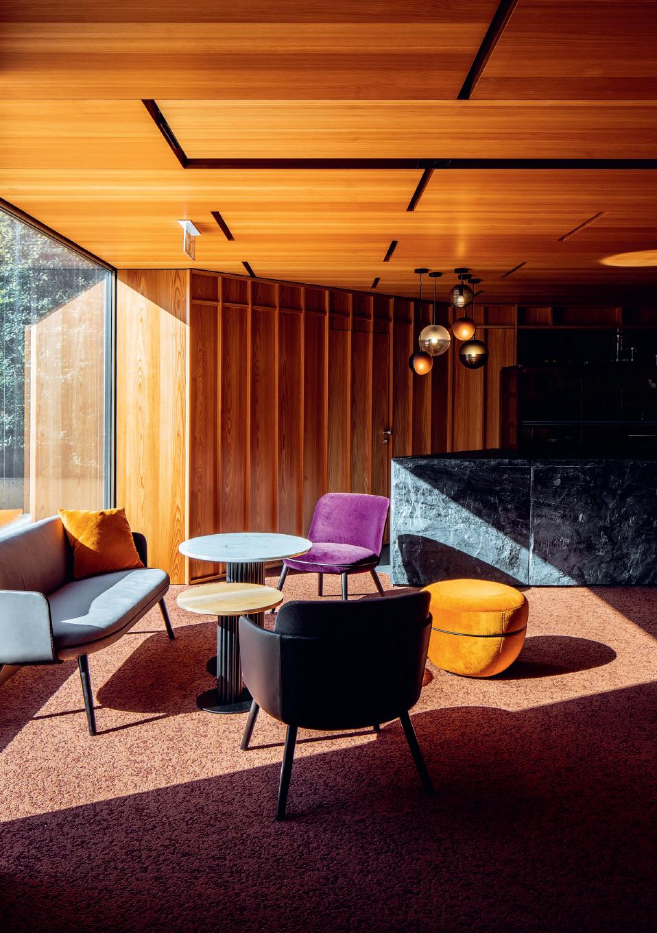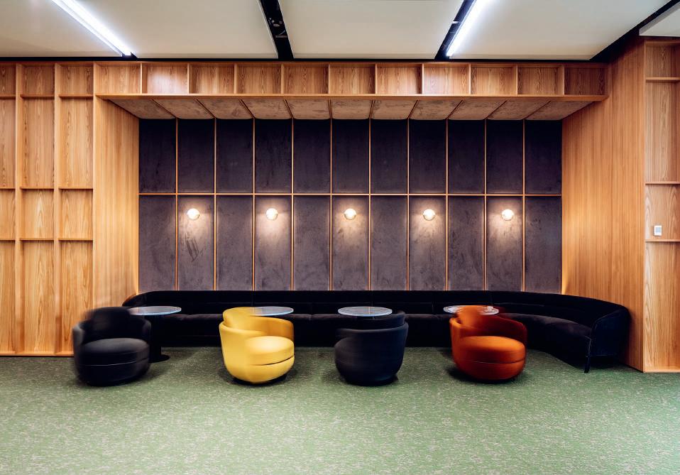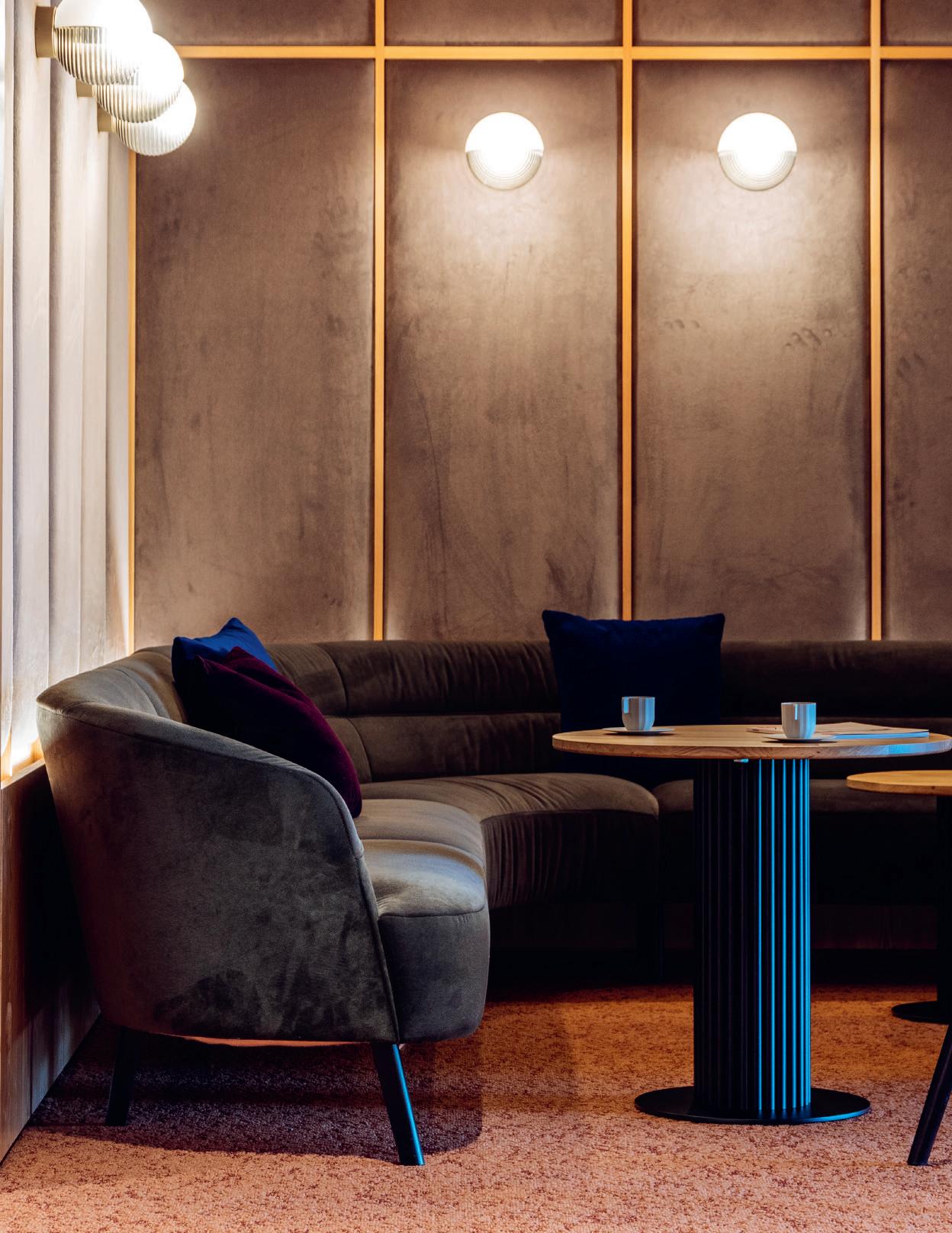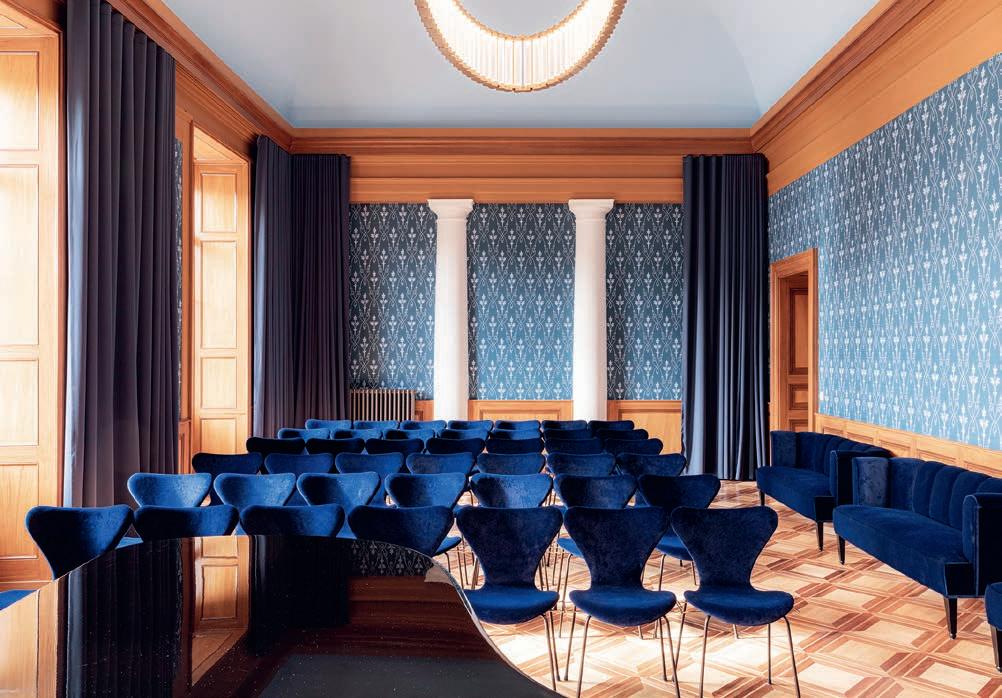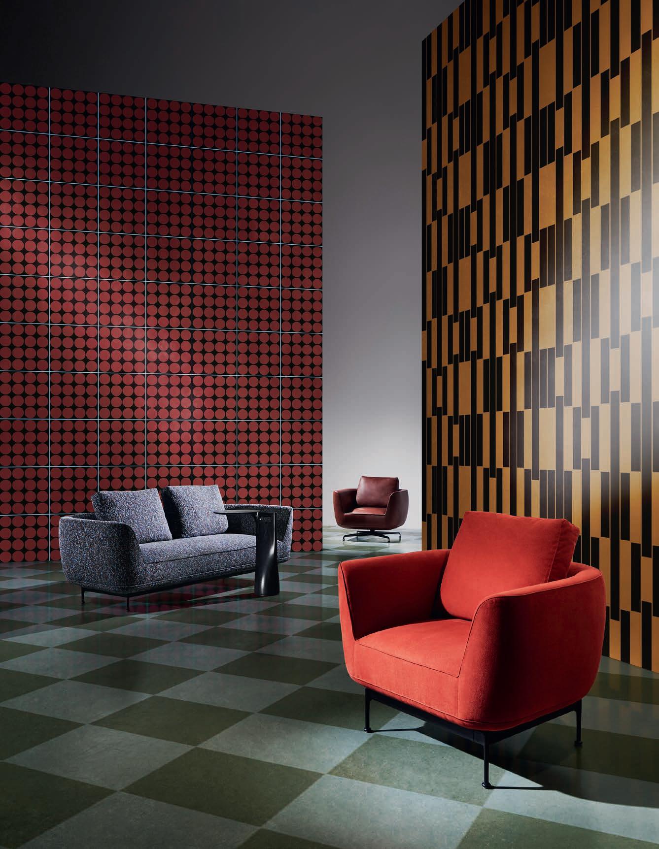 Inauguré en 1973, le Centre international de conférences de Genève (CICG) est destiné à accueillir des conférences et congrès à caractère politique, économique, technique, mais aussi privé. Sa volumétrie unique, avec sa paroi centrale qui traverse le bâtiment, permet de décloisonner les deux salles principales et offre une précieuse flexibilité. Une rénovation de ses aménagements intérieurs a été entreprise pour lui conférer une apparence plus contemporaine et facile d’usage, tout en préservant les caractéristiques du lieu. Fruit d’une phase de réflexion intense menée conjointement par Teo Jakob et le bureau GM Architectes Associés à la suite d’un concours remporté en 2018, son aménagement est très ludique. La rénovation a principalement porté sur le revêtement de sol, l’éclairage et le mobilier. Différentes versions du fauteuil Miles de Wittmann ont été conçues pour les espaces du Bar Léman et du Club Lounge. Des banquettes sur mesure ont été réalisées à partir du canapé Odeon afin de s’adapter à la configuration des lieux. Elles s’harmonisent parfaitement avec les tables Miles et les lampes Pulpo. Les couleurs très variées des revêtements en tissu ainsi que les cuirs suivent un concept chromatique sophistiqué tout en répondant aux exigences strictes du canton de Genève en matière de protection incendie. Une ambiance raffinée et conviviale se dégage des espaces et souligne la nature intemporelle des éléments créés par le designer Sebastian Herkner.