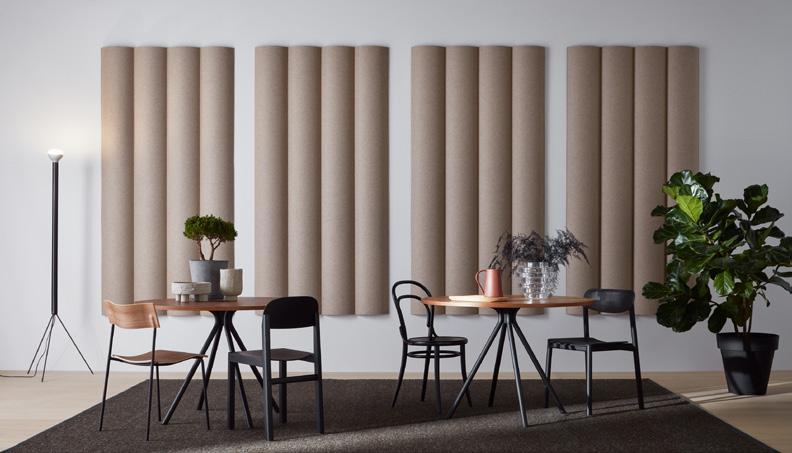 Son múltiples las opciones que encontramos para acondicionar acústicamente el espacio de trabajo. Sutiles y ornamentales separadores de espacios, lámparas de material absorbentes o simples paneles decorativos atenuar el ruido de fondo y crean atmosferas para la concentración y la reflexión. No obstante, contamos con soluciones más sofisticadas como paneles murales acústicos que incorporan sistemas de retroiluminación y audio inalámbrico.