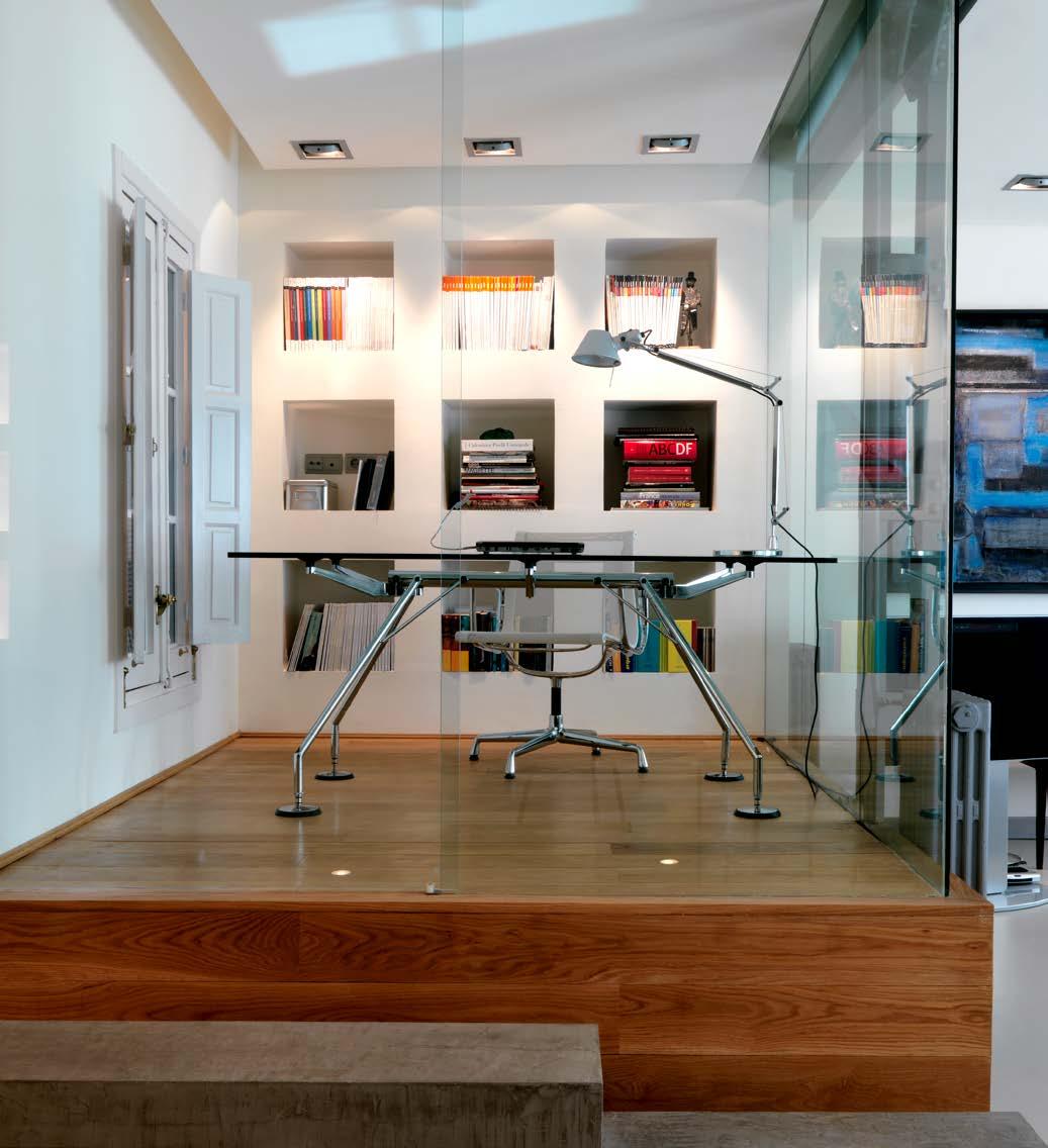 a iluminación que garantiza los requisitos mínimos necesarios para el correcto desempeño, en el hogar es recomendable guiarse por los mismos principios. Para ello, Aretha dispone de apoyo técnico cualificado para la realización del estudio luminotécnico en caso de que se considere oportuno. La simbiosis de este análisis técnico con la intuición artística actuará como materia prima para determinar el carácter profesional y exclusivo de tu oficina en casa.