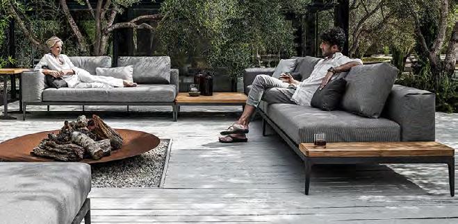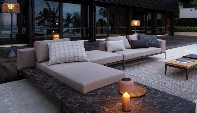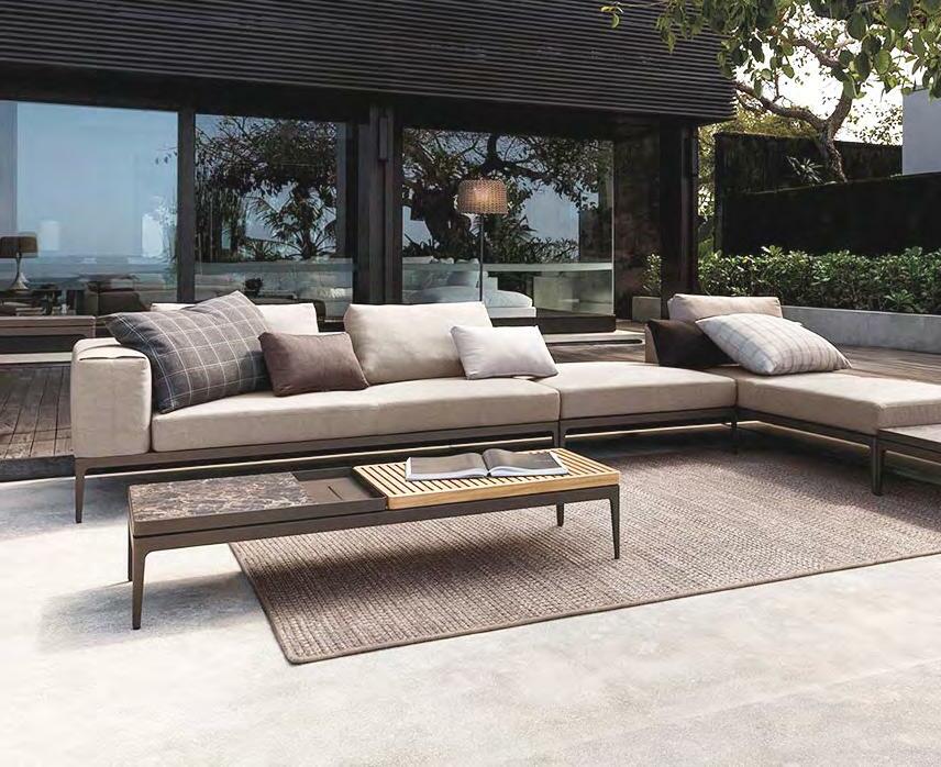 Grid has been conceived as a bridge between stark minimalist design and large scale luxury. By combining slim, aluminium frames powder coated in Meteor or White with elegant geometric forms of deep and comfortable seat and back cushions.