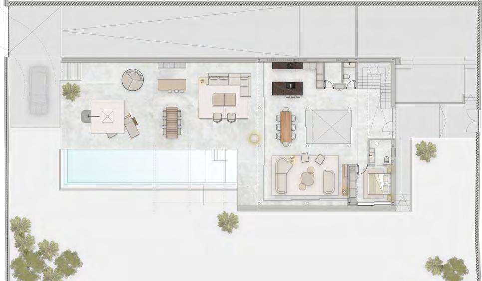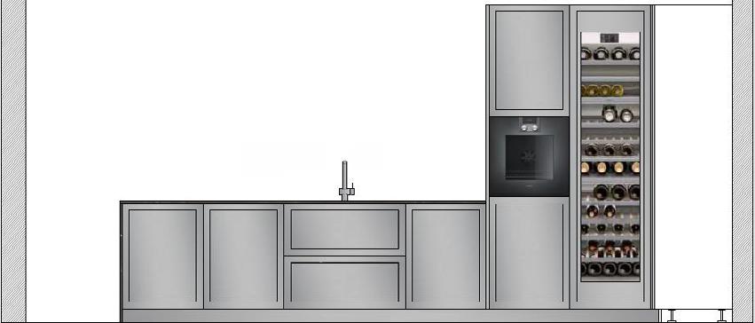 In the Villa Falcó Project, the Kitchens are fully equipped with base units and tall units. Fronts are beautifully lacquered with Industrial frame in addition to the natural countertop in Brushed Pietra Gray Marble and Miele brand appliances.