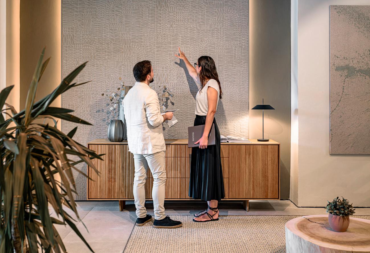 Espacio Materia is a 360º service designed to provide a comprehensive design experience. We offer a wide range of products, including flooring, wall coverings, furniture, and bathroom accessories, all with the exceptional quality that defines Espacio Home Design. With this new service, we aim to deliver a global interior design proposal, combining our signature quality with expert attention. Our goal is to seamlessly integrate interior design with its surroundings, creating harmonious and functional spaces.