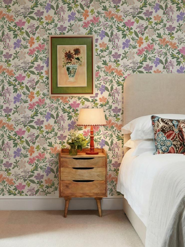 The RHS Flower Medley Wallpaper features a vibrant array of colourful flowers. This lively design adds a touch of cheerful elegance to any room, evoking the feeling of a wildflower meadow in full bloom.