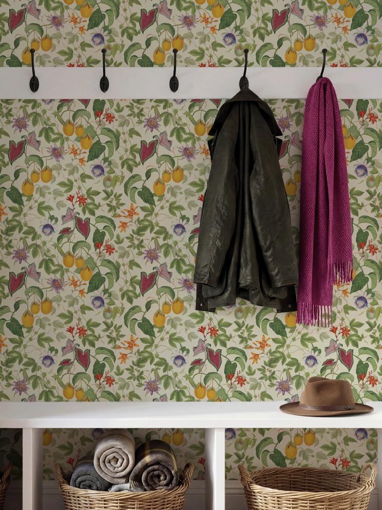 Inspired by the lush foliage and vibrant fruits of a tropical paradise, the RHS Citrus & Vine Wallpaper features a captivating mix of passion flowers, citrus fruits, and lush leaves. This lively design brings a touch of exotic beauty to any space, creating a refreshing and invigorating atmosphere.