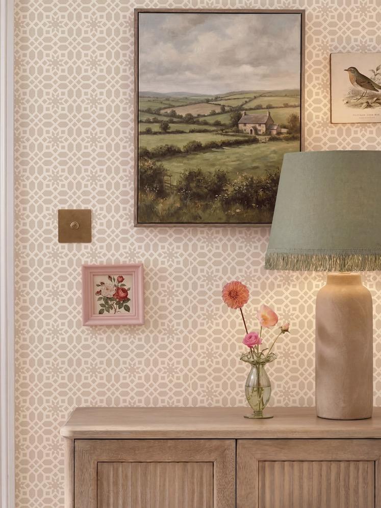 Designed to complement bolder patterns, the RHS Dandy Floral Wallpaper features a subtle geometric pattern on a soft background. This versatile design adds a touch of understated elegance to any room, making it an ideal backdrop for those who appreciate refined textures and delicate details.