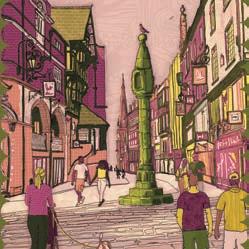 Each issue we take the time to thank our advertisers, interviewees and other contributors. These wonderful people play an essential part in helping VOX come together and we really appreciate their involvement. So, thank you to all of you who inputted time and effort into this latest edition. Of course, no issue of VOX would be complete without the front cover artwork from our resident artist Emma Gore. In this issue, her artwork brings to life the streets that converge at Chester Cross.