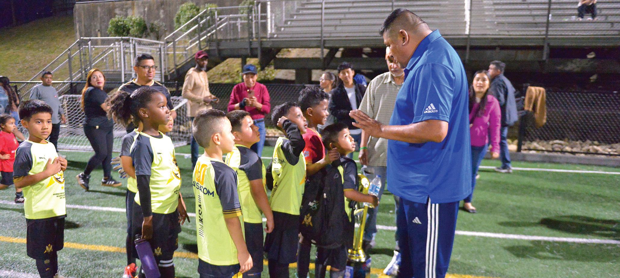 Ansiosos los niños del equipo KSA por recibir las medallas y el trofeo de campeón de parte de Roberto Vargas