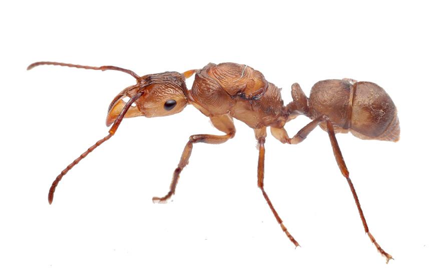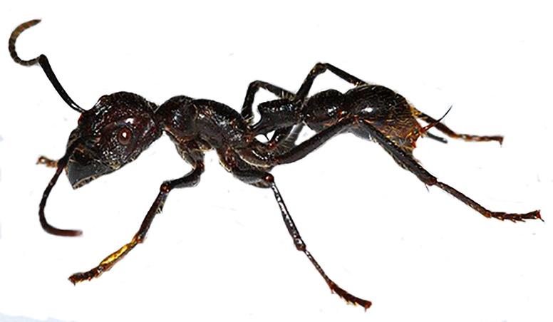 La familia Formicidae, perteneciente al orden Hymenóptera, incluye a las hormigas, insectos sociales que se encuentran en casi todos los ecosistemas del mundo. Una de sus principales características es su organización social altamente estructurada, donde una colonia está compuesta por una reina, encargada de la reproducción, obreras que realizan tareas como la recolección de alimentos, el cuidado de las crías y la defensa del nido, y en algunos casos, machos, cuya única función es fecundar a la reina. Las hormigas tienen un cuerpo segmentado, con antenas largas y flexibles que les permiten detectar señales químicas, así como un aparato bucal adaptado para morder y manipular objetos. Muchas especies cuentan con un aguijón venenoso, que utilizan para defenderse o capturar presas. Su capacidad para colaborar en equipo y la eficiencia en la organización del trabajo dentro de la colonia, les permiten adaptarse a una gran variedad de hábitats. Las hormigas desempeñan roles ecológicos esenciales, como el reciclaje de materia orgánica, la polinización y el control de plagas, influyendo significativamente en la estructura y el funcionamiento de los ecosistemas. Se distribuyen en los departamentos de Beni, Santa Cruz, Pando, Tarija, Chuquisaca, Oruro, Cochabamba y La Paz. Se encontraron cinco especies en toda el área de estudio.