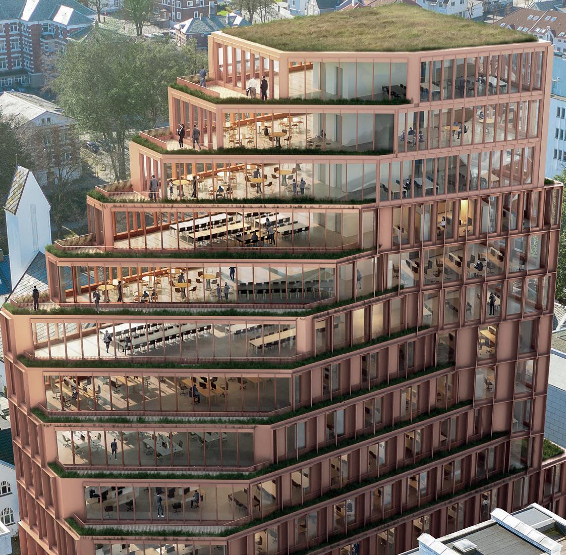 • Det rehabiliterte bygget vil tilby fleksible kontorløsninger, sosiale møteplasser, ulike serveringskonsepter, samt treningsfasiliteter på byens tak